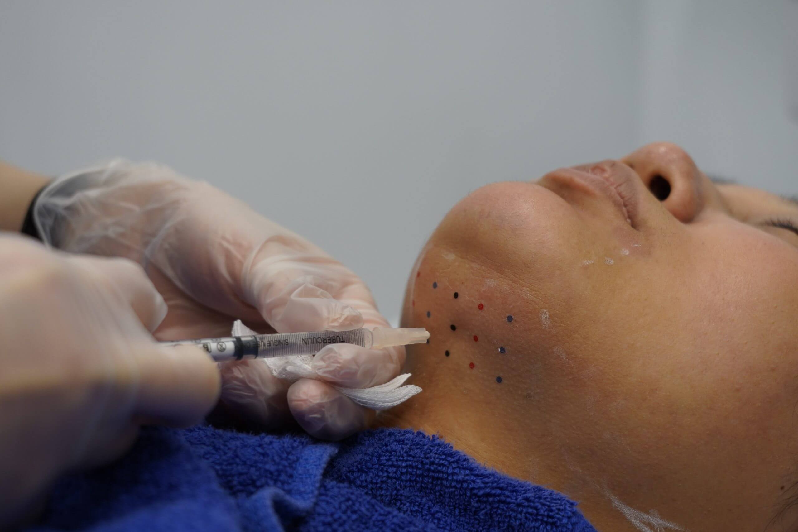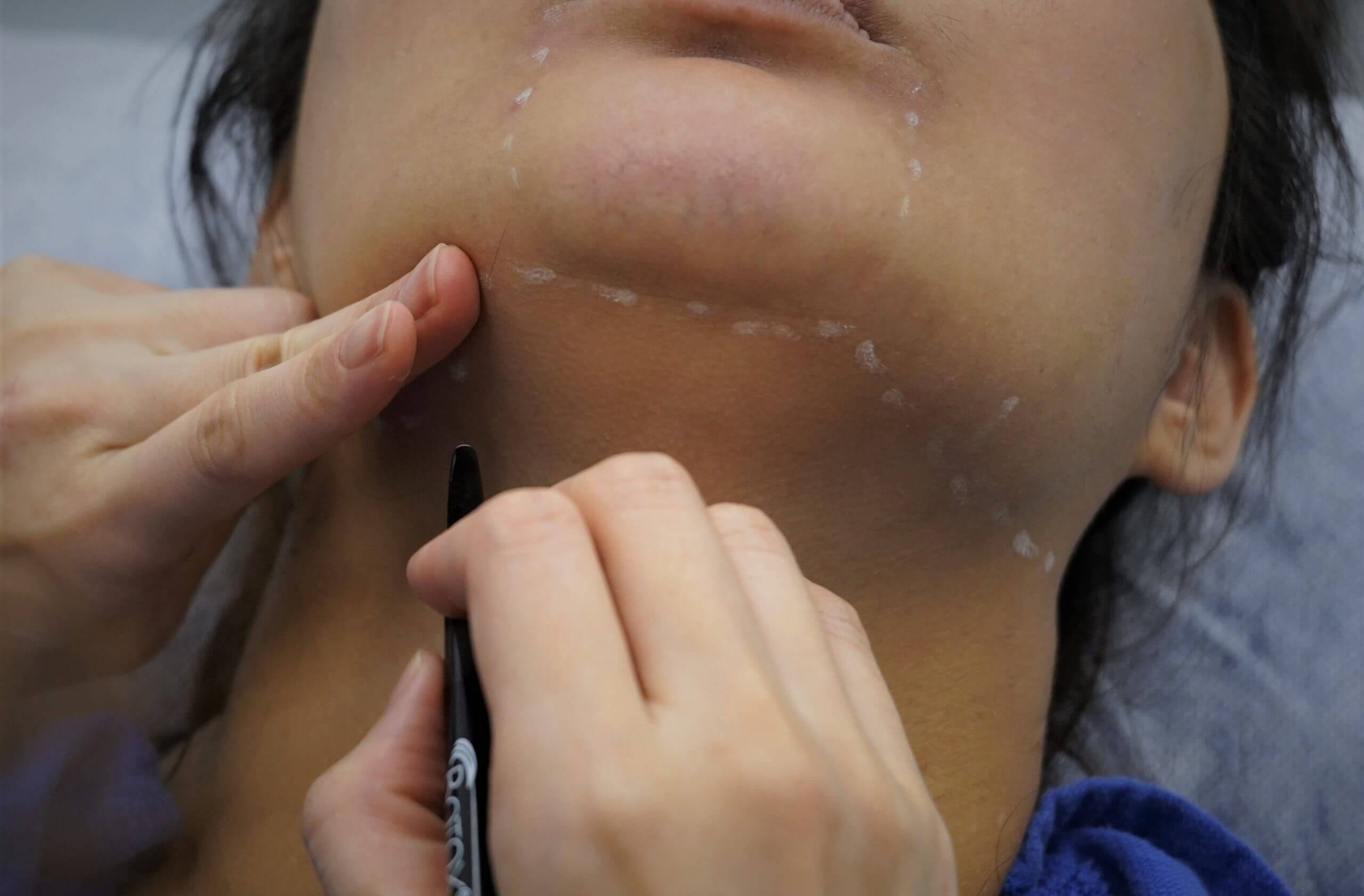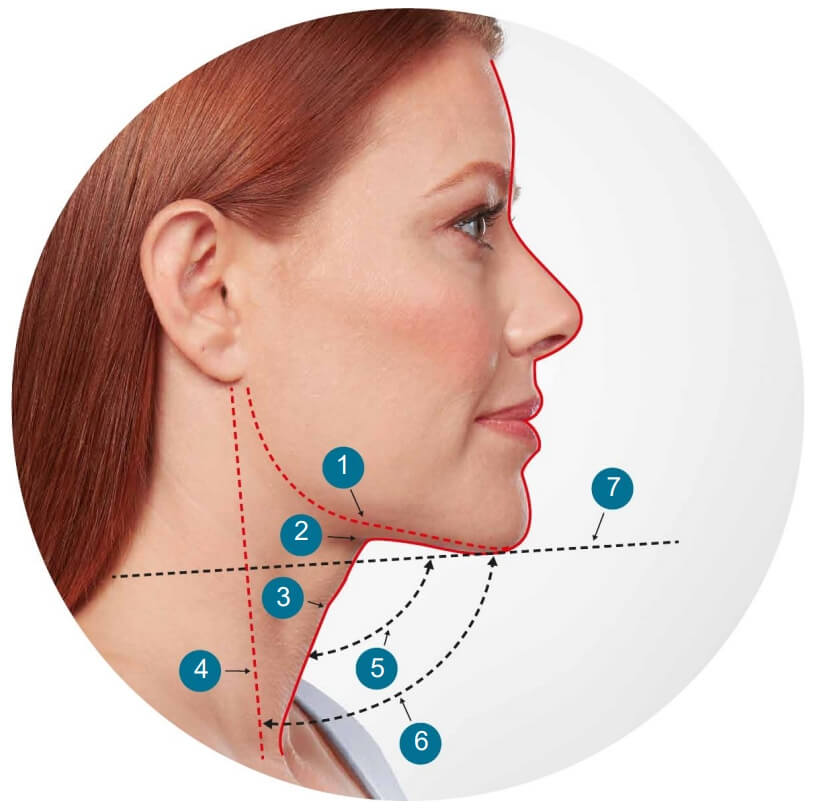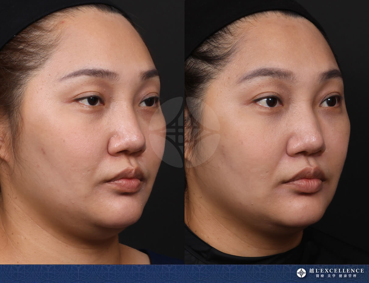 Belkyra倍克脂改善臉部頦下脂肪堆積中文名稱:倍克脂注射劑。英文名稱:BELKYRA TM (deoxycholic acid) injection衛部藥輸字第027135號。美國倍克脂消脂針注射劑 Belkyra,經美國FDA核准,適用於改善成年人中度至重度因臉部頦下脂肪堆積所造成的外觀和輪廓雙下巴。Belkyra應由專業醫師評估後,確認部位脂肪量是否可執行施打,劑量依面積而定,每回合2mg/cm2的總劑量,注射至頦下部位的皮下脂肪組織內,最多可施行6回合的治療,彼此間隔至少1個月。 實際案例 產品介紹 雙下巴的成因是為頦下脂肪的過度堆積所造成,所以要改善雙下巴外觀,就要先解決部位脂肪過多的問題,美國消脂針的Belkyra倍克脂,它是採用是針頭注射方式,利用Belkyra倍克脂能破壞脂肪細胞的作用原理,有效減少局部脂肪的數量。Belkyra倍克脂其內含有去氧膽酸(Deoxycholic acid)的注射劑,屬於一種細胞溶解物,而脫氧膽酸本就是透過腸道自然分泌、在人體內自然存在的元素,用來幫助消化以及破壞脂肪。當Belkyra倍克脂注入到脂肪組織時,脫氧膽酸會立即與脂肪細胞進行作用,一層一層的破壞細胞膜,使細胞溶解,再透過人體自然代謝機制,將溶解後的脂肪細胞排出體外,以達到「減少脂肪」的改善結果。 那些困擾可以藉由Belkyra倍克脂改善? Belkyra倍克脂是目前唯一合法改善雙下巴消脂針劑,因此若您自我評估有頦下輪廓特徵不夠理想問題者,且醫師評估是脂肪堆積造成,則建議可以考慮施打Belkyra倍克脂。理想的頦下輪廓特徵:1. 明顯的下顎線輪廓。 2. 舌骨下凹陷。 3. 可見的甲狀腺軟骨凸出。 4. 可見的胸鎖乳突肌。 5. 下巴頸部角度。 6. 胸鎖乳突肌頦下角度90度(SM-SM角度)。 7. 頦下腺。 我需要打多少劑量的Belkyra倍克脂? 因每個人對理想狀態的要求及個人現況的不同,會有不同的建議劑量, 建議術前由專業的醫師完整諮詢後,給予適合的療程建議。臨床上驗證,一般在一次2-3瓶,共2-4次療程後,會有79%的人滿意效果,有68.2%病患的頦下脂肪雙下巴分級,都至少降低1級。 倍克脂三大特色優勢 無須動刀,微創傷口輕鬆消脂 倍克脂消脂針劑通過美國FDA核准的適應症,利用全新安全、微侵入性的方式消除下巴多餘脂肪。無需動刀、無手術風險、無需麻醉,僅細微的針孔就可消除不想要的脂肪細胞。 效果持久,有效消除脂肪細胞 Belkyra倍克脂去除脂肪細胞後,就不會再生成且效果持久。專業醫師提醒,新的脂肪細胞仍可能會因體重遽增而增加新的脂肪量,因此應維持體重及健康的生活方式,以確保改善後的效果持續,不需重複治療。 去除肥胖,同時改善鬆弛肌膚 倍克脂除了可去除多餘脂肪,在脂肪破壞的過程中,免疫系統中的巨噬細胞會刺激纖維母細胞活化,刺激膠原蛋白增生,進而增強皮膚內的纖維間隔支撐力和皮膚彈性,提升下巴頸部的肌膚緊實度。 治療過程介紹 與醫師面診諮詢,由醫師透過「捏」與「觸摸」下頦區域,確認是否有足夠的脂肪可供治療。 透過溝通理解雙方想要達成的理想狀態,確認施打部位並標示需要接受部位的範圍,醫師將在雙下巴的前、側與後方畫出邊界線。 醫師將在標記完成出邊界線後,進行網格黏貼。 依照轉印網格的面積,評估需要的劑量。 接受Belkyra倍克脂治療。當Belkyra倍克脂注入到脂肪組織時,脫氧膽酸會立即與脂肪細胞進行作用。 注射後可能感到輕微疼痛不適,但通常藉由冰敷後很快會消失。水腫大約3-7天會消除,可以冰敷以加速消腫。 常見問與答 療程需要幾次治療? 依照每個人對於理想下巴線條的不同,通常會有不同的劑量評估結果,一般來說,同一部位建議施打兩次,每次間隔至少一個月。就美國臨床的治療經驗與統計觀察來看,每個人平均每次治療需兩至三瓶、療程約兩至四回。經過治療,受Belkyra倍克脂針劑影響的脂肪細胞,是一層一層溶解、被破壞,經由人體代謝後,達到「降低脂肪數量」的結果;治療後若仍維持原有生活習慣,不讓剩餘的脂肪細胞「變大」,減脂效果即可維持,不需重複治療。 哪些人不適合倍克脂療程? 1. 對藥劑成份過敏者。2. 懷孕、哺乳中婦女。3. 治療處皮膚正在過敏或發炎者。4. 對於皮膚過度鬆弛且脖子直紋明顯者。5. 正在服用人蔘、魚油、銀杏、止痛藥、阿斯匹靈、維他命E或其他促進血液循環、降低血液凝固機能的食品藥品瘀青機率稍高,建議施打前停用。6. 若進行過或計畫進行臉部、頸部或下巴手術者,請事先與醫師告知。7. 過去或現在於頸部或靠近頸部處有發生醫療狀況者,請事先與醫師告知。8. 曾經有過或目前有吞嚥困難、出血問題等情形者,請事先與醫師告知。 術前注意事項 Belkyra倍克脂注射,因溶解細胞的作用正在發生,治療部位會立即感到腫脹,24至48小時內會達到腫脹的高峰,個人代謝體質的不同,消腫的時間約為兩至四週。一般來說如果施打後沒有腫脹反應,表示藥物反應的效果較差,若注射24小時內,都沒有感到腫脹,需要立即與醫師聯繫。Belkyra倍克脂注射可能產生的副作用包含:腫脹、疼痛、麻痺、發紅,以及治療部位出現硬化區塊…等。實際療程效果依據個人體質條件而有差異,本資訊無法替代醫師親自問診,任何療程效果與風險均應以醫師親自診斷為主。 術後保養需知 1. 注射後可能感到輕微疼痛不適,但通常極輕微且會很快消失。2. 水腫大約3-7天會消除,可以冰敷以加速消腫。3. 若有瘀青,前48小時先冰敷,之後溫敷,通常一週左右會逐漸消