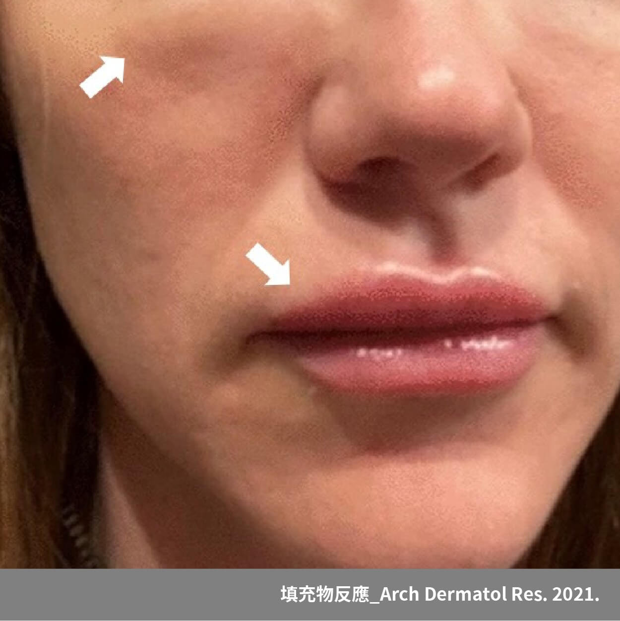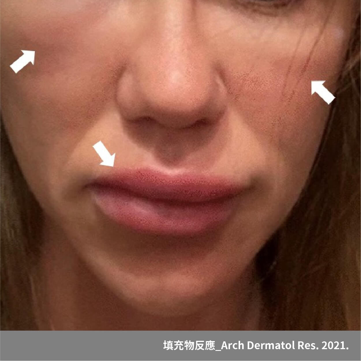 延遲性反應則多發生在四天後,表現包括蕁麻疹、麻疹樣紅疹、紅斑性肢痛症、臉部填充物反應及延遲性注射部位反應。