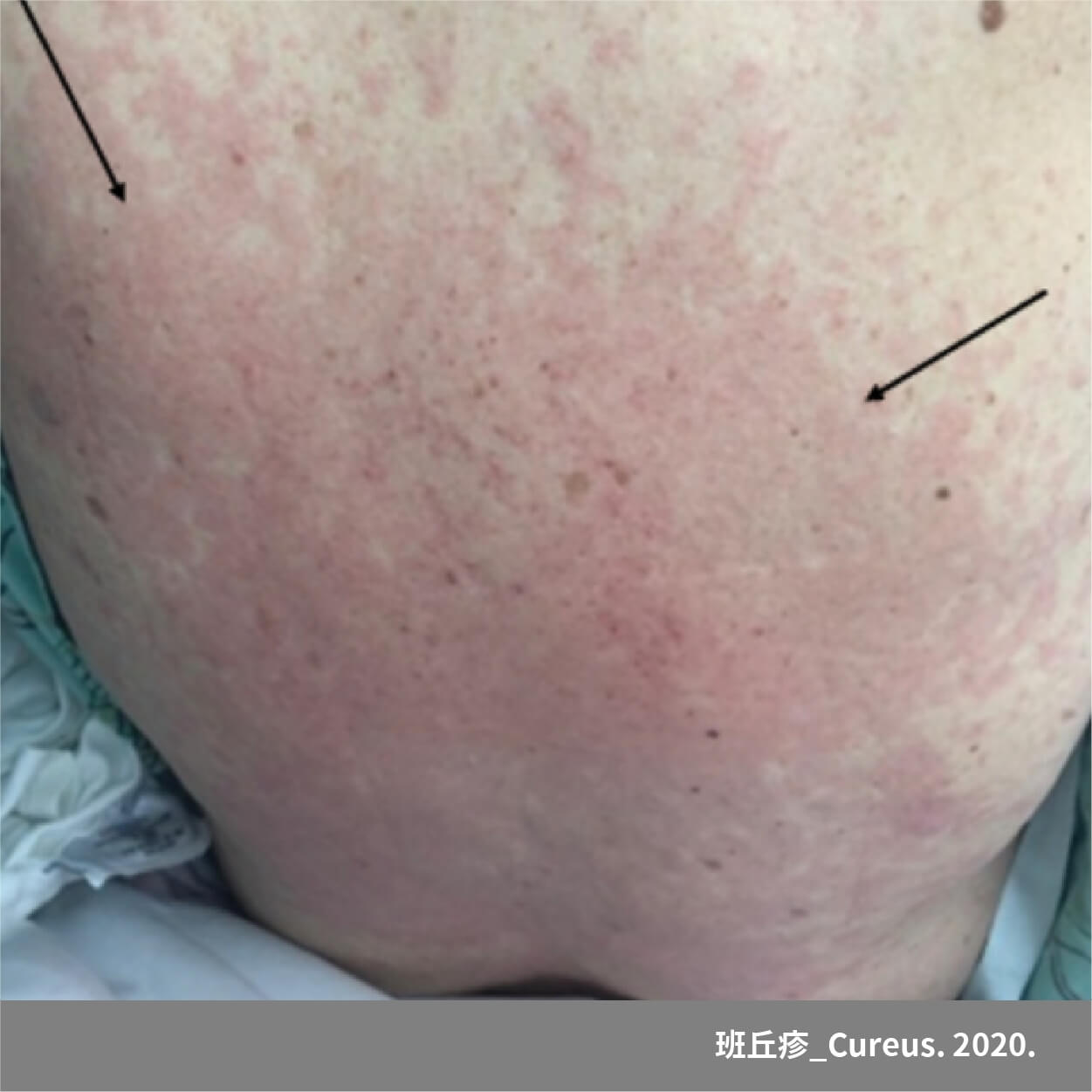 – 蕁麻疹本來就是例如輪狀病毒、EB病毒、鏈球菌、黴漿菌等病毒及細菌感染後的常見的皮膚表現,因此新冠肺炎病毒感染後會出現蕁麻疹並不奇怪。