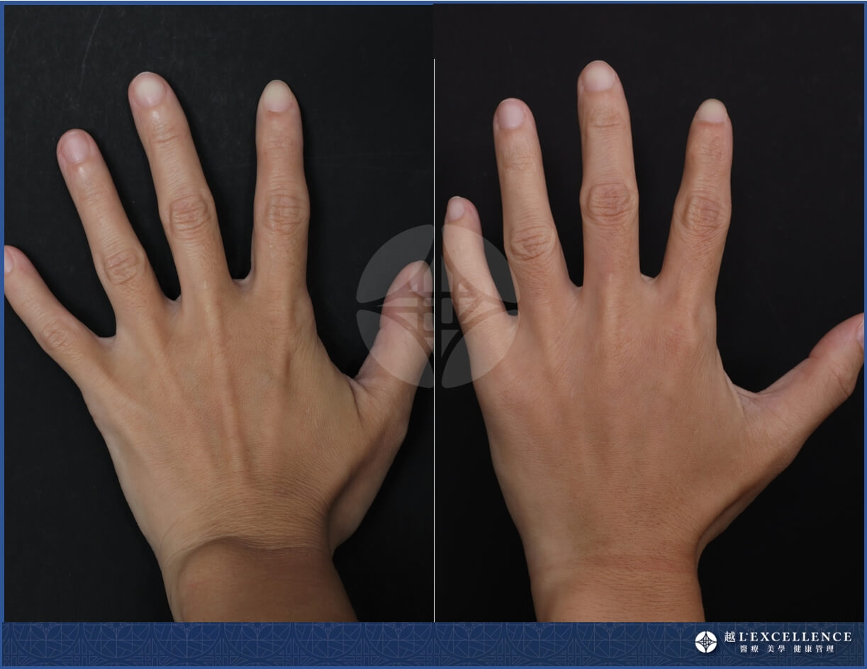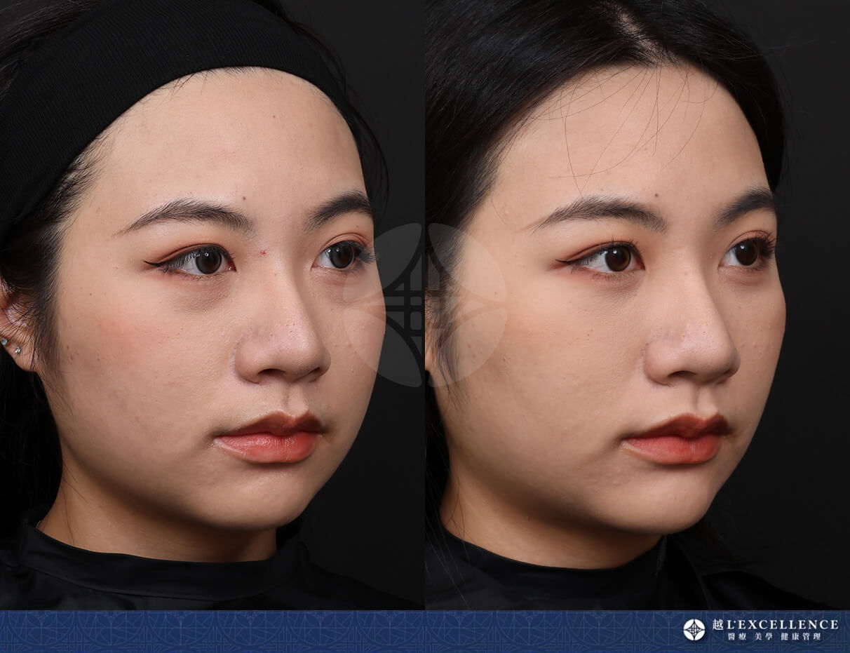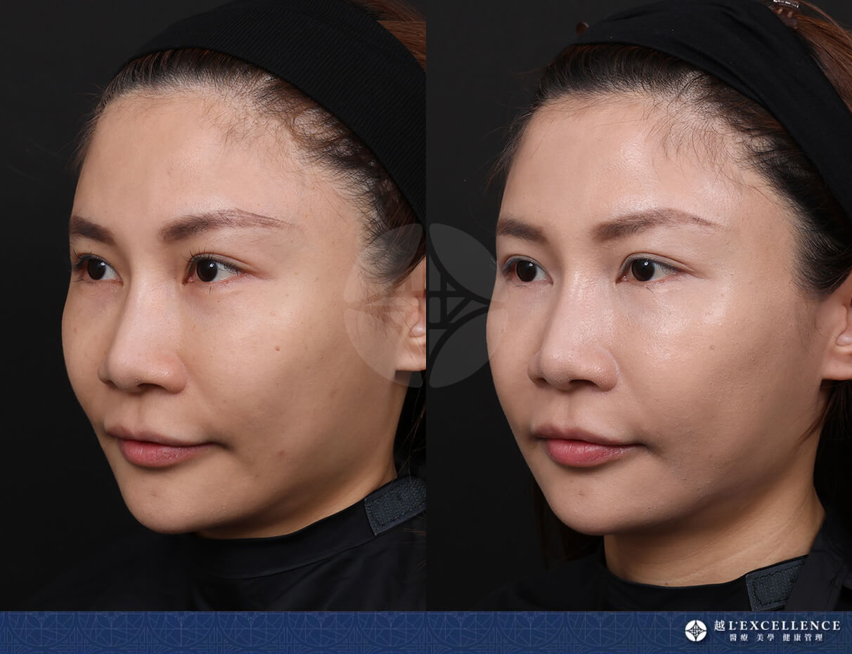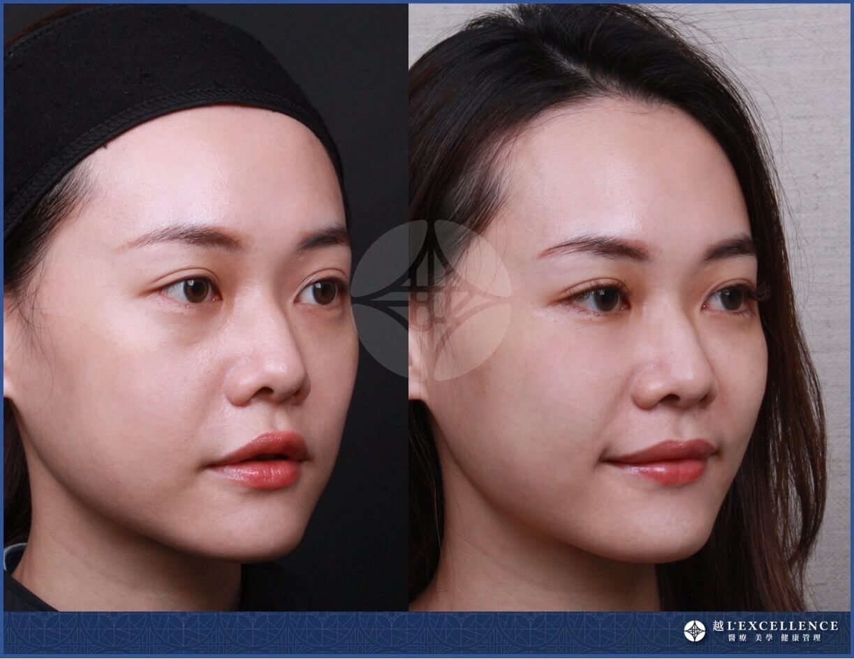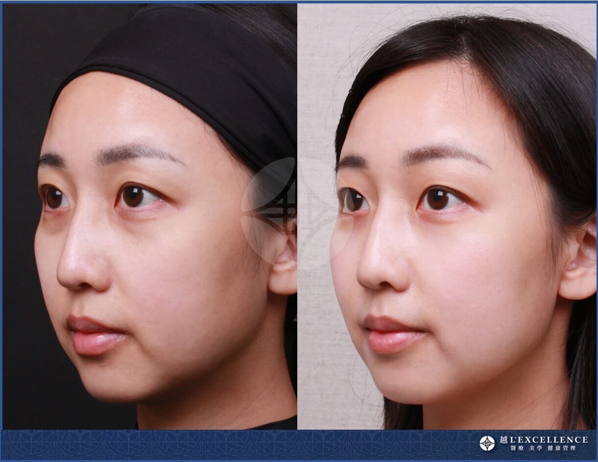 臉部精緻微雕,打造俐落輪廓-玻尿酸中文名稱:玻尿酸透明質酸。英文名稱:Hyaluronic Acid。玻尿酸是一種透明的膠狀結晶物,具有強力的吸水性,可保持肌膚彈性,可以有效增加及鎖緊肌膚中的水份,進而保持肌膚彈性與維持形狀。透過注射於治療部位,增進皮下組織的容量,讓臉部凹陷得到改善,擺脫給人的疲倦感;而立體度的運用,也能提升五官俐落感,讓鼻子、下半臉、下巴的V型線更加清楚明顯,而撫平皺紋均有不錯的效果。 治療原理玻尿酸(hyaluronic Acid,簡稱HA)學名為透明質酸,是一種外觀透明、具黏性的天然多醣類膠狀物質。玻尿酸是人體中本來就有的物質,年輕肌膚柔軟有彈性,就是因為玻尿酸以膠質型態,大量存在於人體的結締組織與真皮層中,而玻尿酸強大的保濕功能,除了可以提升肌膚的光澤與飽水度外,也是保持年輕的關鍵之一。玻尿酸進行注射後,能立即補充肌膚的儲水保濕能力,改善老化導致的組織萎縮,並讓肌膚恢復年輕豐潤感,而進階治療更可以達到臉部精雕效果,包括蘋果肌、淚溝填補、隆鼻、V下巴、豐額頭、豐頰等豐唇延伸應用。一般來說,玻尿酸注射當下就可以感受明顯效果的變化、過程中不用開刀,搭配玻尿酸不同品牌及不同分子劑型與劑量建議,以各部位量身打造的技法,才能達到全方位雕塑治療效果。 術前評估 市面上各家品牌及不同劑型的玻尿酸,注射方式以及注射深度與適合的治療部位都有所不同。越L’EXCELLENCE醫療美學主要以國際原廠三大領導品牌《Restylane瑞絲朗》、《JUVÉDERM喬雅登》及《TEOXANE緹奧希》進行玻尿酸針劑治療。透過專業醫師一對一的術前諮詢服務,醫師會根據個人臉型比例與患者對療程的期望,匯集多年臨床經驗與美感評估,提供更為精確的客製化療程,確保每位患者都能達到自然且精緻的美型輪廓。 實際案例 此案例透過醫師全臉評估,以玻尿酸針劑搭配肉毒桿菌素治療,針對全臉輪廓線條精緻提升。 此案例透過玻尿酸治療,針對易顯老態的眼窩凹陷處進行填補,免動刀即可擁有補脂手術般的術後效果。 此案例透過玻尿酸治療,拉長並修順下巴線條,改善下半臉的臉型輪廓。 此案例透過玻尿酸治療,針對凹陷的夫妻宮(太陽穴)進行填補,使臉型輪廓更加柔順。 此案例透過玻尿酸治療,針對膠原蛋白流失後的臉頰凹陷及法令紋,進行填充提升臉部膨潤度。 此案例透過玻尿酸治療,針對膠原蛋白流失後,造成的蘋果肌塌陷進行填補,找回豐潤飽滿的中臉線條感。 此案例透過玻尿酸治療,針對蘋果肌塌陷及淚溝造成的疲態感,進行不同的層次填補,找回豐潤飽滿的中臉線條感與告別淚溝造成的黑眼圈。 此案例透過大分子玻尿酸填補治療,針對下巴不對稱及過短的型態,進行不同的層次填補,找回協調且對稱的下巴線條,讓臉型輪廓更加協調。 此案例透過大分子玻尿酸填補治療,針對下巴過短的外型,進行不同的層次填補,找回協調且對稱的下巴線條,讓臉型輪廓更加協調。 此案例透過大分子玻尿酸填補治療,針對下巴過短後縮的外型,進行玻尿酸層次填補,打造屬於男生方形陽剛帥氣的下巴線條感。 此案例透過玻尿酸治療,針對淚溝填補,進而改善眼袋及黑眼圈造成的疲態感;此外,並協同音波拉提眼周2.0深度治療,另整體效果更加分。 此案例藉由玻尿酸填補方式,因避免鼻形變寬的疑慮,採獨創不同層次的注射技法,搭配產品的特色,進而改善塌陷的鼻形,呈現精緻的美感鼻形。 此案例藉由玻尿酸填補方式,因避免鼻形變寬的疑慮,採獨創不同層次的注射技法,搭配產品的特色,進而改善塌陷的鼻形,呈現精緻的美感鼻形。 此案例藉由玻尿酸填補方式,因避免鼻形變寬的疑慮,採獨創不同層次的注射技法,搭配產品的特色,進而改善塌陷的鼻形,呈現精緻的美感鼻形。 此案例藉由玻尿酸填補方式,因避免鼻形變寬的疑慮,採獨創不同層次的注射技法,搭配產品的特色,進而改善塌陷的鼻形,呈現精緻的美感鼻形。 此案例藉由玻尿酸填補方式,採特殊的注射技法,搭配產品的特色,進而改善眼窩凹陷塌的樣貌。 此案例藉由玻尿酸填補方式,採特殊的注射技法,搭配產品的特色,進而改善眼窩凹陷塌的樣貌。 手部治療 上述手部案例是透過玻尿酸針劑治療,有效改善手部皺折及細紋,此為術後六週之比對,其玻尿酸劑型及施打支數,由專業醫師評估後安排客製化療程。 上述手部案例,是藉由晶亮瓷治療。適用於手部皺褶的紋理( 雞爪手),透過產品的特性,且術後不需特別按摩,是相對自然且安全的皮下填充劑選擇。改善肌膚紋路問題,由專業醫師評估治療。 Restylane NASHA[純粹]速效水膜針 來自北歐,玻尿酸領導品牌。挺美的,追求美的旅程中,瑞絲朗一直是你的最佳靈感繆思,追求美的旅程中,瑞絲朗一直是你的最佳靈感繆思,承襲北歐設計精神,以純簡奢華的工藝打造出能抵抗變形的高彈力質純玻尿酸; 品質良好的玻尿酸劑型應有大、中、小分子之分,依照不同的治療部位及肌膚構造的需求,謹慎選擇適合的玻尿酸劑型,才能訂製專屬優雅,讓美麗持久閃耀。 NASHA [純粹]玻尿酸特色減痛配方高舒適:恢復期短立即見效溫和低敏低腫脹:99%近似天然玻尿酸效果持久看得見:12-18個月 滿意度高玻尿酸分子均勻:細緻度高 量身訂製絕佳組織支撐力:支撐拉提 雕塑輪廓 NASHA [純粹]速效水膜針。365全天候保濕增加彈性緊緻肌膚修飾細紋改善痘疤高效保濕 Restylane Vital 
