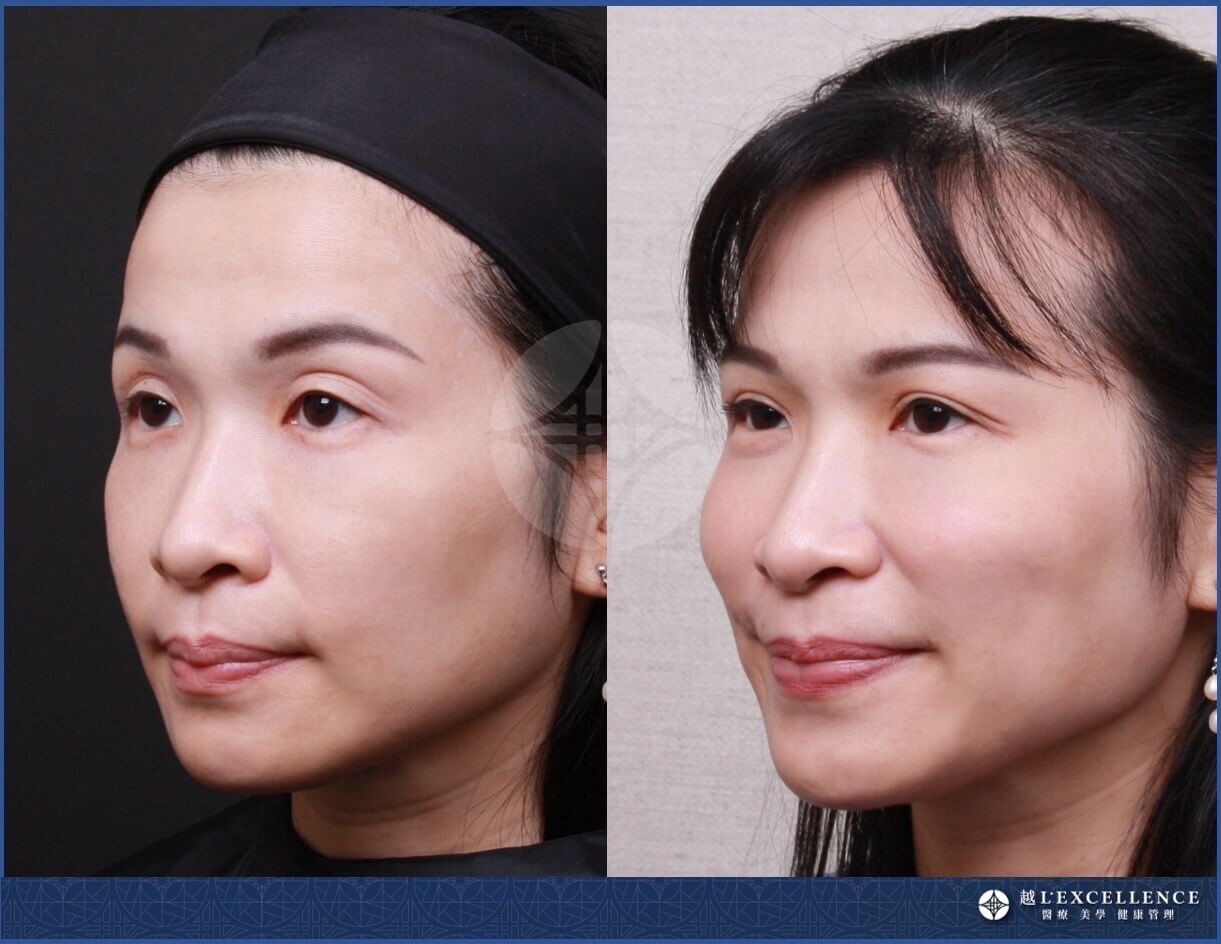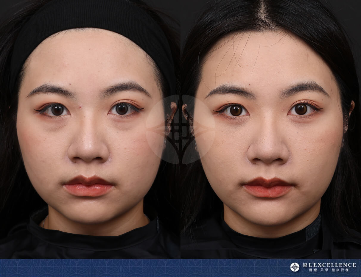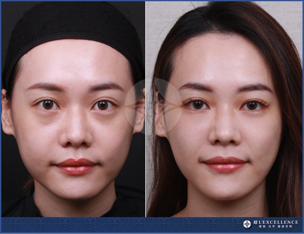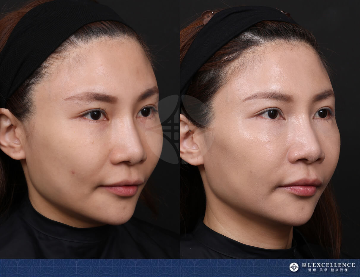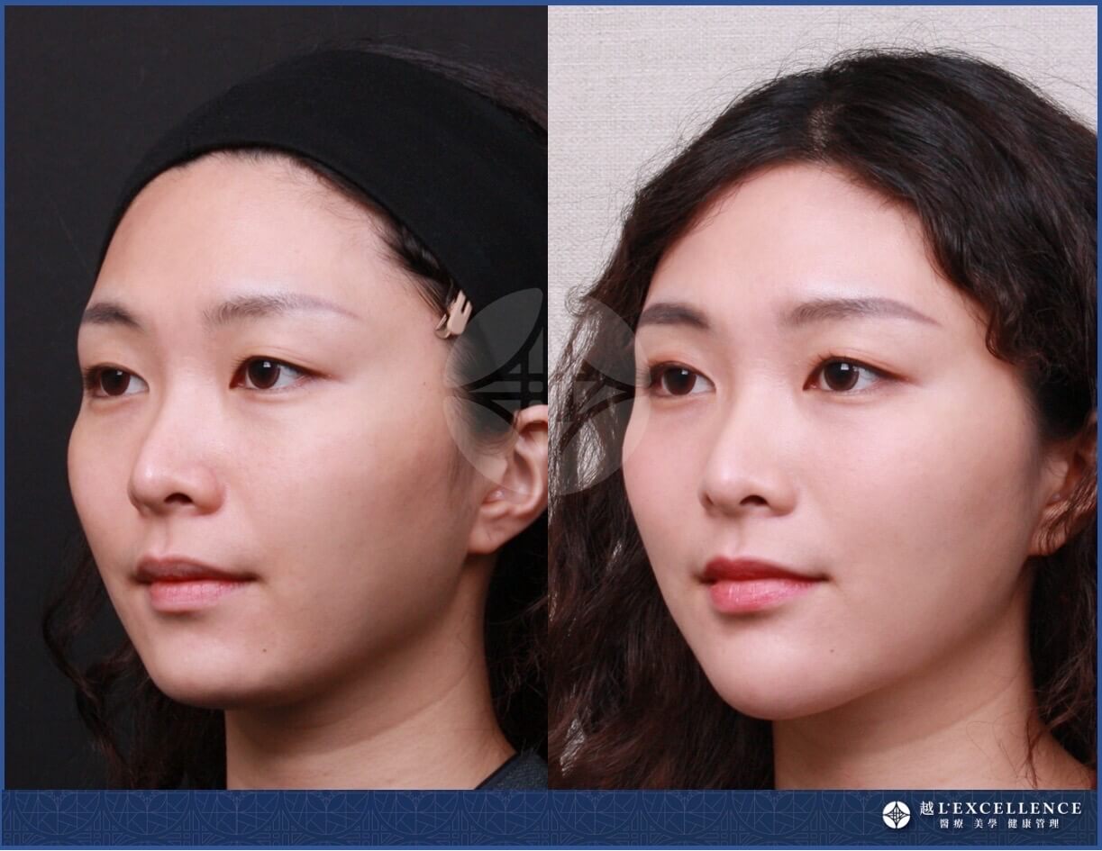 臉部精緻微雕,打造俐落輪廓-玻尿酸中文名稱:玻尿酸透明質酸。英文名稱:Hyaluronic Acid。玻尿酸是一種透明的膠狀結晶物,具有強力的吸水性,可保持肌膚彈性,可以有效增加及鎖緊肌膚中的水份,進而保持肌膚彈性與維持形狀。透過注射於治療部位,增進皮下組織的容量,讓臉部凹陷得到改善,擺脫給人的疲倦感;而立體度的運用,也能提升五官俐落感,讓鼻子、下半臉、下巴的V型線更加清楚明顯,而撫平皺紋均有不錯的效果。 治療原理玻尿酸(hyaluronic Acid,簡稱HA)學名為透明質酸,是一種外觀透明、具黏性的天然多醣類膠狀物質。玻尿酸是人體中本來就有的物質,年輕肌膚柔軟有彈性,就是因為玻尿酸以膠質型態,大量存在於人體的結締組織與真皮層中,而玻尿酸強大的保濕功能,除了可以提升肌膚的光澤與飽水度外,也是保持年輕的關鍵之一。玻尿酸進行注射後,能立即補充肌膚的儲水保濕能力,改善老化導致的組織萎縮,並讓肌膚恢復年輕豐潤感,而進階治療更可以達到臉部精雕效果,包括蘋果肌、淚溝填補、隆鼻、V下巴、豐額頭、豐頰等豐唇延伸應用。一般來說,玻尿酸注射當下就可以感受明顯效果的變化、過程中不用開刀,搭配玻尿酸不同品牌及不同分子劑型與劑量建議,以各部位量身打造的技法,才能達到全方位雕塑治療效果。 術前評估 市面上各家品牌及不同劑型的玻尿酸,注射方式以及注射深度與適合的治療部位都有所不同。越L’EXCELLENCE醫療美學主要以國際原廠三大領導品牌《Restylane瑞絲朗》、《JUVÉDERM喬雅登》及《TEOXANE緹奧希》進行玻尿酸針劑治療。透過專業醫師一對一的術前諮詢服務,醫師會根據個人臉型比例與患者對療程的期望,匯集多年臨床經驗與美感評估,提供更為精確的客製化療程,確保每位患者都能達到自然且精緻的美型輪廓。 實際案例 此案例透過醫師全臉評估,以玻尿酸針劑搭配肉毒桿菌素治療,針對全臉輪廓線條精緻提升。 此案例透過玻尿酸治療,針對易顯老態的眼窩凹陷處進行填補,免動刀即可擁有補脂手術般的術後效果。 此案例透過玻尿酸治療,拉長並修順下巴線條,改善下半臉的臉型輪廓。 此案例透過玻尿酸治療,針對凹陷的夫妻宮(太陽穴)進行填補,使臉型輪廓更加柔順。 此案例透過玻尿酸治療,針對膠原蛋白流失後的臉頰凹陷及法令紋,進行填充提升臉部膨潤度。 此案例透過玻尿酸治療,針對膠原蛋白流失後,造成的蘋果肌塌陷進行填補,找回豐潤飽滿的中臉線條感。 此案例透過玻尿酸治療,針對蘋果肌塌陷及淚溝造成的疲態感,進行不同的層次填補,找回豐潤飽滿的中臉線條感與告別淚溝造成的黑眼圈。 此案例透過大分子玻尿酸填補治療,針對下巴不對稱及過短的型態,進行不同的層次填補,找回協調且對稱的下巴線條,讓臉型輪廓更加協調。 此案例透過大分子玻尿酸填補治療,針對下巴過短的外型,進行不同的層次填補,找回協調且對稱的下巴線條,讓臉型輪廓更加協調。 此案例透過大分子玻尿酸填補治療,針對下巴過短後縮的外型,進行玻尿酸層次填補,打造屬於男生方形陽剛帥氣的下巴線條感。 此案例透過玻尿酸治療,針對淚溝填補,進而改善眼袋及黑眼圈造成的疲態感;此外,並協同音波拉提眼周2.0深度治療,另整體效果更加分。 此案例藉由玻尿酸填補方式,因避免鼻形變寬的疑慮,採獨創不同層次的注射技法,搭配產品的特色,進而改善塌陷的鼻形,呈現精緻的美感鼻形。 此案例藉由玻尿酸填補方式,因避免鼻形變寬的疑慮,採獨創不同層次的注射技法,搭配產品的特色,進而改善塌陷的鼻形,呈現精緻的美感鼻形。 此案例藉由玻尿酸填補方式,因避免鼻形變寬的疑慮,採獨創不同層次的注射技法,搭配產品的特色,進而改善塌陷的鼻形,呈現精緻的美感鼻形。 此案例藉由玻尿酸填補方式,因避免鼻形變寬的疑慮,採獨創不同層次的注射技法,搭配產品的特色,進而改善塌陷的鼻形,呈現精緻的美感鼻形。 此案例藉由玻尿酸填補方式,採特殊的注射技法,搭配產品的特色,進而改善眼窩凹陷塌的樣貌。 此案例藉由玻尿酸填補方式,採特殊的注射技法,搭配產品的特色,進而改善眼窩凹陷塌的樣貌。 手部治療 上述手部案例是透過玻尿酸針劑治療,有效改善手部皺折及細紋,此為術後六週之比對,其玻尿酸劑型及施打支數,由專業醫師評估後安排客製化療程。 上述手部案例,是藉由晶亮瓷治療。適用於手部皺褶的紋理( 雞爪手),透過產品的特性,且術後不需特別按摩,是相對自然且安全的皮下填充劑選擇。改善肌膚紋路問題,由專業醫師評估治療。 Restylane NASHA[純粹]速效水膜針 來自北歐,玻尿酸領導品牌。挺美的,追求美的旅程中,瑞絲朗一直是你的最佳靈感繆思,追求美的旅程中,瑞絲朗一直是你的最佳靈感繆思,承襲北歐設計精神,以純簡奢華的工藝打造出能抵抗變形的高彈力質純玻尿酸; 品質良好的玻尿酸劑型應有大、中、小分子之分,依照不同的治療部位及肌膚構造的需求,謹慎選擇適合的玻尿酸劑型,才能訂製專屬優雅,讓美麗持久閃耀。 NASHA [純粹]玻尿酸特色減痛配方高舒適:恢復期短立即見效溫和低敏低腫脹:99%近似天然玻尿酸效果持久看得見:12-18個月 滿意度高玻尿酸分子均勻:細緻度高 量身訂製絕佳組織支撐力:支撐拉提 雕塑輪廓 NASHA [純粹]速效水膜針。365全天候保濕增加彈性緊緻肌膚修飾細紋改善痘疤高效保濕 Restylane Vital 
