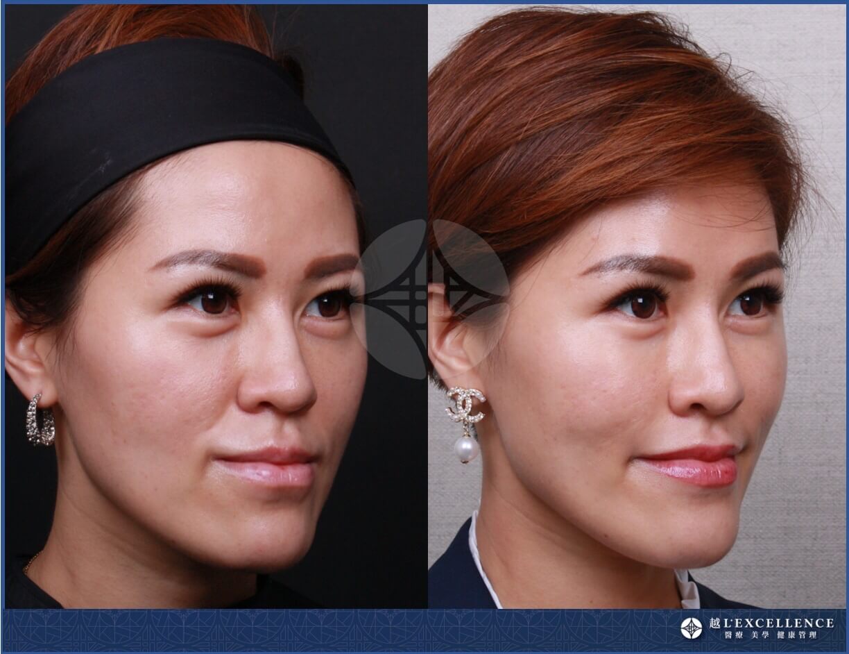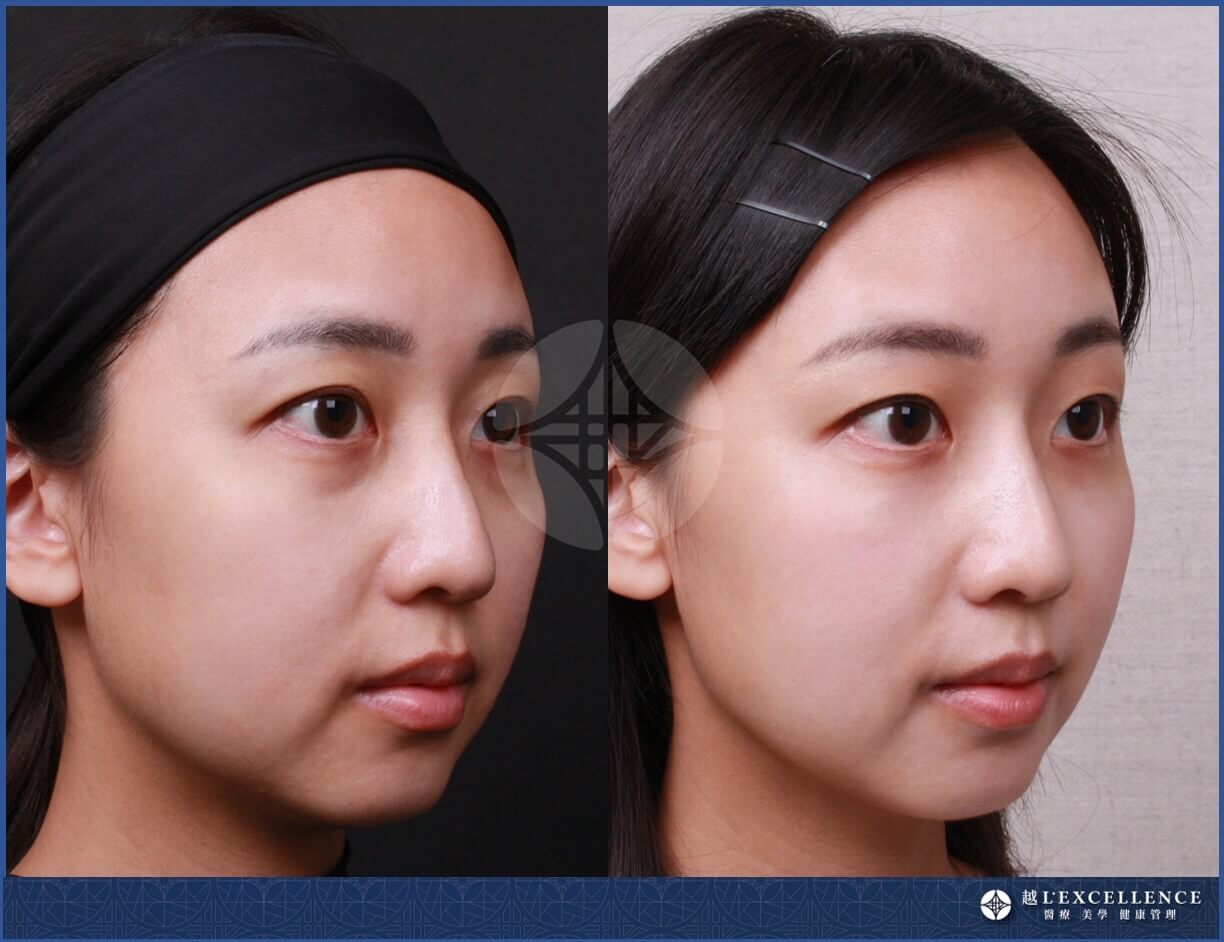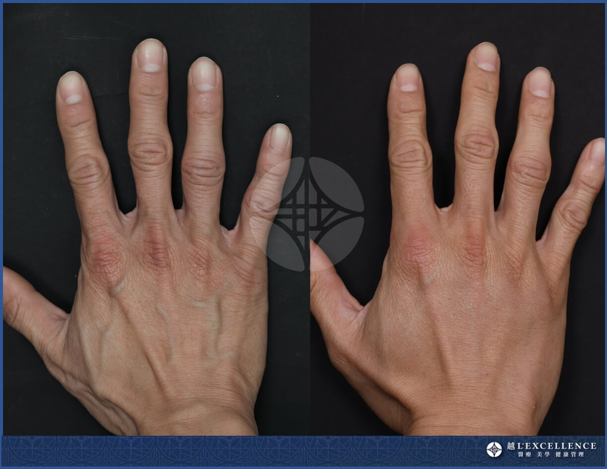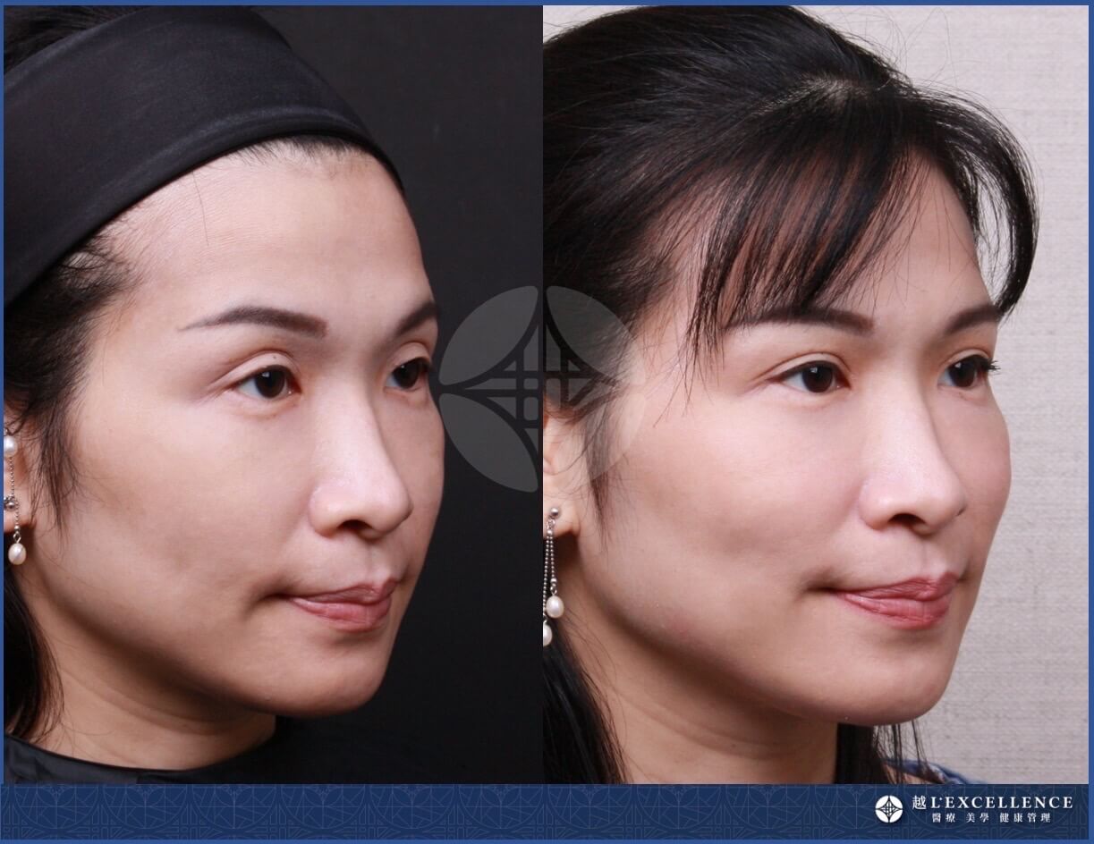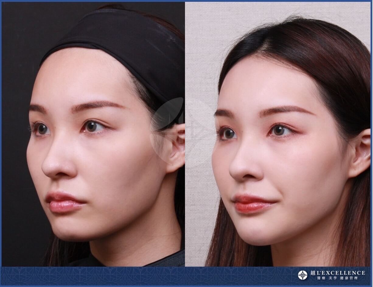 臉部精緻微雕,打造俐落輪廓-玻尿酸中文名稱:玻尿酸透明質酸。英文名稱:Hyaluronic Acid。玻尿酸是一種透明的膠狀結晶物,具有強力的吸水性,可保持肌膚彈性,可以有效增加及鎖緊肌膚中的水份,進而保持肌膚彈性與維持形狀。透過注射於治療部位,增進皮下組織的容量,讓臉部凹陷得到改善,擺脫給人的疲倦感;而立體度的運用,也能提升五官俐落感,讓鼻子、下半臉、下巴的V型線更加清楚明顯,而撫平皺紋均有不錯的效果。 治療原理玻尿酸(hyaluronic Acid,簡稱HA)學名為透明質酸,是一種外觀透明、具黏性的天然多醣類膠狀物質。玻尿酸是人體中本來就有的物質,年輕肌膚柔軟有彈性,就是因為玻尿酸以膠質型態,大量存在於人體的結締組織與真皮層中,而玻尿酸強大的保濕功能,除了可以提升肌膚的光澤與飽水度外,也是保持年輕的關鍵之一。玻尿酸進行注射後,能立即補充肌膚的儲水保濕能力,改善老化導致的組織萎縮,並讓肌膚恢復年輕豐潤感,而進階治療更可以達到臉部精雕效果,包括蘋果肌、淚溝填補、隆鼻、V下巴、豐額頭、豐頰等豐唇延伸應用。一般來說,玻尿酸注射當下就可以感受明顯效果的變化、過程中不用開刀,搭配玻尿酸不同品牌及不同分子劑型與劑量建議,以各部位量身打造的技法,才能達到全方位雕塑治療效果。 術前評估 市面上各家品牌及不同劑型的玻尿酸,注射方式以及注射深度與適合的治療部位都有所不同。越L’EXCELLENCE醫療美學主要以國際原廠三大領導品牌《Restylane瑞絲朗》、《JUVÉDERM喬雅登》及《TEOXANE緹奧希》進行玻尿酸針劑治療。透過專業醫師一對一的術前諮詢服務,醫師會根據個人臉型比例與患者對療程的期望,匯集多年臨床經驗與美感評估,提供更為精確的客製化療程,確保每位患者都能達到自然且精緻的美型輪廓。 實際案例 此案例透過醫師全臉評估,以玻尿酸針劑搭配肉毒桿菌素治療,針對全臉輪廓線條精緻提升。 此案例透過玻尿酸治療,針對易顯老態的眼窩凹陷處進行填補,免動刀即可擁有補脂手術般的術後效果。 此案例透過玻尿酸治療,拉長並修順下巴線條,改善下半臉的臉型輪廓。 此案例透過玻尿酸治療,針對凹陷的夫妻宮(太陽穴)進行填補,使臉型輪廓更加柔順。 此案例透過玻尿酸治療,針對膠原蛋白流失後的臉頰凹陷及法令紋,進行填充提升臉部膨潤度。 此案例透過玻尿酸治療,針對膠原蛋白流失後,造成的蘋果肌塌陷進行填補,找回豐潤飽滿的中臉線條感。 此案例透過玻尿酸治療,針對蘋果肌塌陷及淚溝造成的疲態感,進行不同的層次填補,找回豐潤飽滿的中臉線條感與告別淚溝造成的黑眼圈。 此案例透過大分子玻尿酸填補治療,針對下巴不對稱及過短的型態,進行不同的層次填補,找回協調且對稱的下巴線條,讓臉型輪廓更加協調。 此案例透過大分子玻尿酸填補治療,針對下巴過短的外型,進行不同的層次填補,找回協調且對稱的下巴線條,讓臉型輪廓更加協調。 此案例透過大分子玻尿酸填補治療,針對下巴過短後縮的外型,進行玻尿酸層次填補,打造屬於男生方形陽剛帥氣的下巴線條感。 此案例透過玻尿酸治療,針對淚溝填補,進而改善眼袋及黑眼圈造成的疲態感;此外,並協同音波拉提眼周2.0深度治療,另整體效果更加分。 此案例藉由玻尿酸填補方式,因避免鼻形變寬的疑慮,採獨創不同層次的注射技法,搭配產品的特色,進而改善塌陷的鼻形,呈現精緻的美感鼻形。 此案例藉由玻尿酸填補方式,因避免鼻形變寬的疑慮,採獨創不同層次的注射技法,搭配產品的特色,進而改善塌陷的鼻形,呈現精緻的美感鼻形。 此案例藉由玻尿酸填補方式,因避免鼻形變寬的疑慮,採獨創不同層次的注射技法,搭配產品的特色,進而改善塌陷的鼻形,呈現精緻的美感鼻形。 此案例藉由玻尿酸填補方式,因避免鼻形變寬的疑慮,採獨創不同層次的注射技法,搭配產品的特色,進而改善塌陷的鼻形,呈現精緻的美感鼻形。 此案例藉由玻尿酸填補方式,採特殊的注射技法,搭配產品的特色,進而改善眼窩凹陷塌的樣貌。 此案例藉由玻尿酸填補方式,採特殊的注射技法,搭配產品的特色,進而改善眼窩凹陷塌的樣貌。 手部治療 上述手部案例是透過玻尿酸針劑治療,有效改善手部皺折及細紋,此為術後六週之比對,其玻尿酸劑型及施打支數,由專業醫師評估後安排客製化療程。 上述手部案例,是藉由晶亮瓷治療。適用於手部皺褶的紋理( 雞爪手),透過產品的特性,且術後不需特別按摩,是相對自然且安全的皮下填充劑選擇。改善肌膚紋路問題,由專業醫師評估治療。 Restylane NASHA[純粹]速效水膜針 來自北歐,玻尿酸領導品牌。挺美的,追求美的旅程中,瑞絲朗一直是你的最佳靈感繆思,追求美的旅程中,瑞絲朗一直是你的最佳靈感繆思,承襲北歐設計精神,以純簡奢華的工藝打造出能抵抗變形的高彈力質純玻尿酸; 品質良好的玻尿酸劑型應有大、中、小分子之分,依照不同的治療部位及肌膚構造的需求,謹慎選擇適合的玻尿酸劑型,才能訂製專屬優雅,讓美麗持久閃耀。 NASHA [純粹]玻尿酸特色減痛配方高舒適:恢復期短立即見效溫和低敏低腫脹:99%近似天然玻尿酸效果持久看得見:12-18個月 滿意度高玻尿酸分子均勻:細緻度高 量身訂製絕佳組織支撐力:支撐拉提 雕塑輪廓 NASHA [純粹]速效水膜針。365全天候保濕增加彈性緊緻肌膚修飾細紋改善痘疤高效保濕 Restylane Vital 