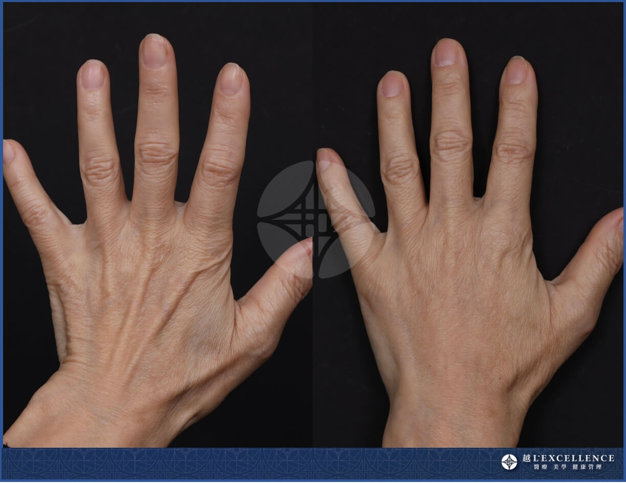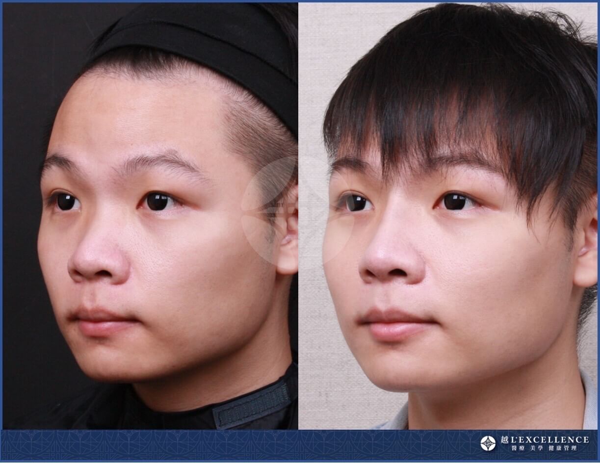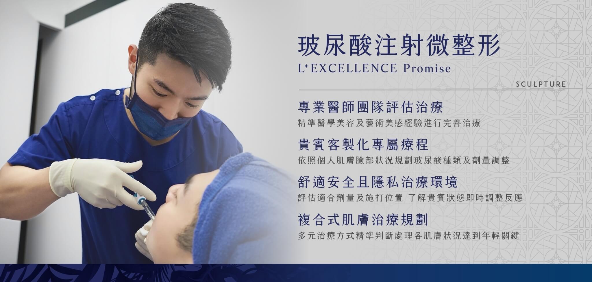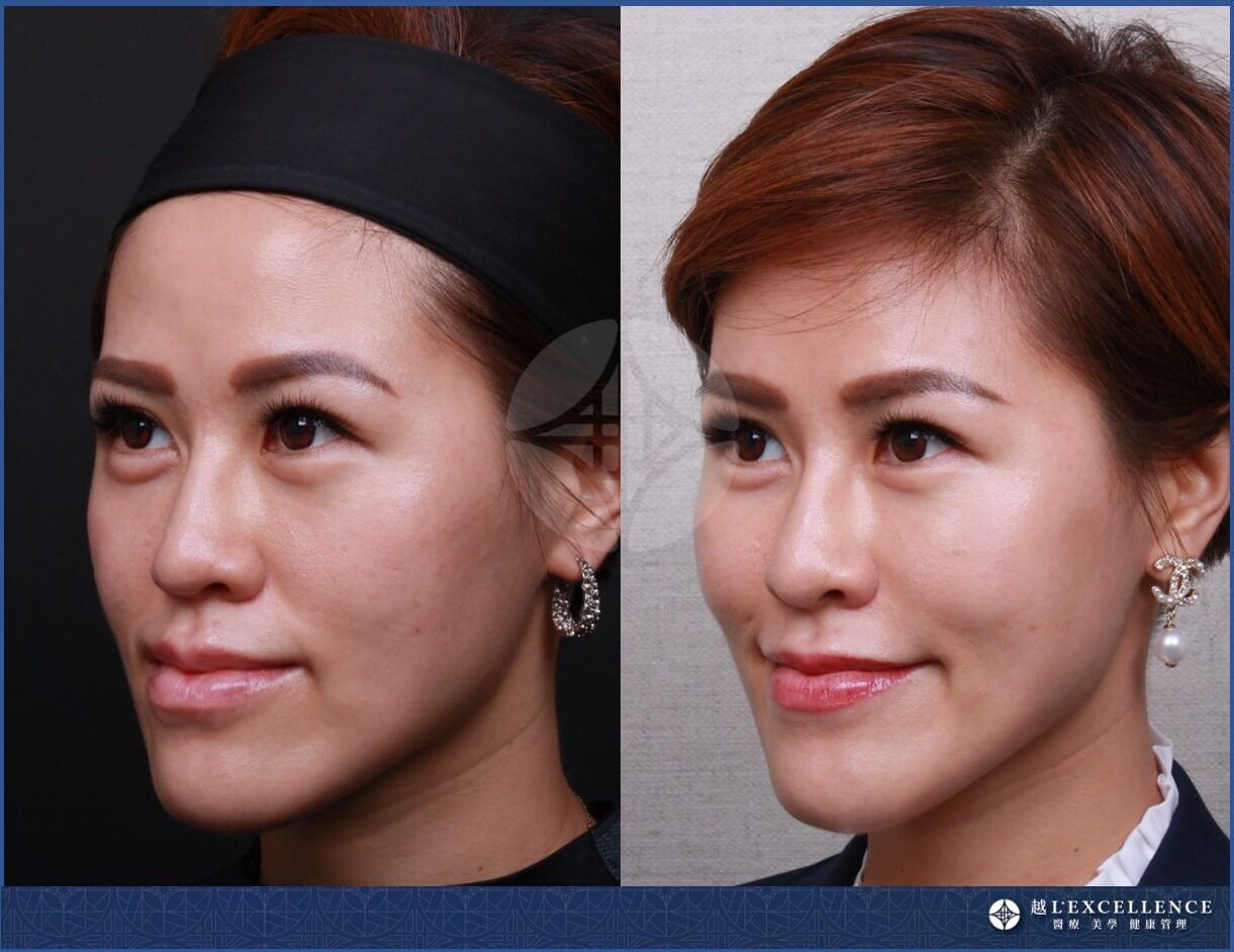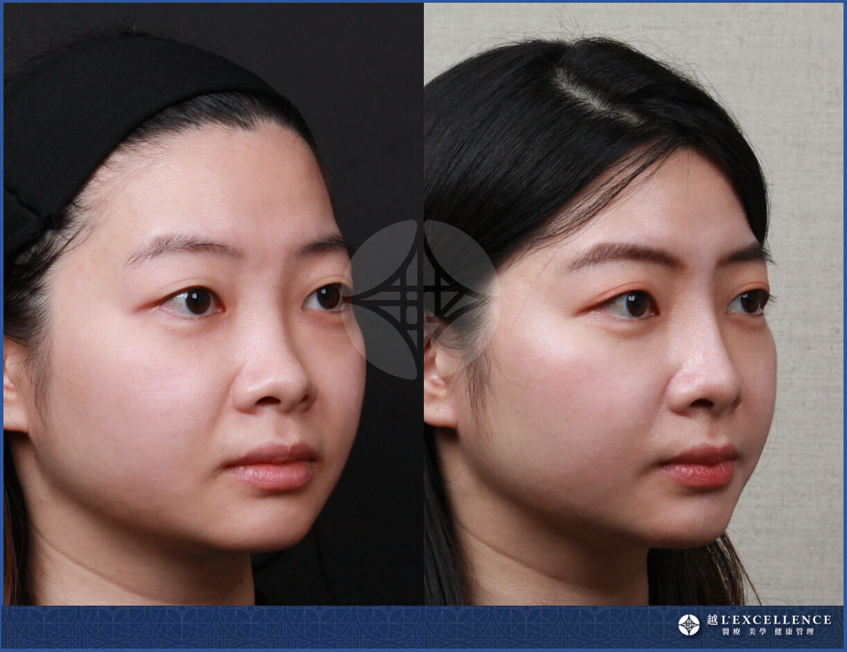 臉部精緻微雕,打造俐落輪廓-玻尿酸中文名稱:玻尿酸透明質酸。英文名稱:Hyaluronic Acid。玻尿酸是一種透明的膠狀結晶物,具有強力的吸水性,可保持肌膚彈性,可以有效增加及鎖緊肌膚中的水份,進而保持肌膚彈性與維持形狀。透過注射於治療部位,增進皮下組織的容量,讓臉部凹陷得到改善,擺脫給人的疲倦感;而立體度的運用,也能提升五官俐落感,讓鼻子、下半臉、下巴的V型線更加清楚明顯,而撫平皺紋均有不錯的效果。 治療原理玻尿酸(hyaluronic Acid,簡稱HA)學名為透明質酸,是一種外觀透明、具黏性的天然多醣類膠狀物質。玻尿酸是人體中本來就有的物質,年輕肌膚柔軟有彈性,就是因為玻尿酸以膠質型態,大量存在於人體的結締組織與真皮層中,而玻尿酸強大的保濕功能,除了可以提升肌膚的光澤與飽水度外,也是保持年輕的關鍵之一。玻尿酸進行注射後,能立即補充肌膚的儲水保濕能力,改善老化導致的組織萎縮,並讓肌膚恢復年輕豐潤感,而進階治療更可以達到臉部精雕效果,包括蘋果肌、淚溝填補、隆鼻、V下巴、豐額頭、豐頰等豐唇延伸應用。一般來說,玻尿酸注射當下就可以感受明顯效果的變化、過程中不用開刀,搭配玻尿酸不同品牌及不同分子劑型與劑量建議,以各部位量身打造的技法,才能達到全方位雕塑治療效果。 術前評估 市面上各家品牌及不同劑型的玻尿酸,注射方式以及注射深度與適合的治療部位都有所不同。越L’EXCELLENCE醫療美學主要以國際原廠三大領導品牌《Restylane瑞絲朗》、《JUVÉDERM喬雅登》及《TEOXANE緹奧希》進行玻尿酸針劑治療。透過專業醫師一對一的術前諮詢服務,醫師會根據個人臉型比例與患者對療程的期望,匯集多年臨床經驗與美感評估,提供更為精確的客製化療程,確保每位患者都能達到自然且精緻的美型輪廓。 實際案例 此案例透過醫師全臉評估,以玻尿酸針劑搭配肉毒桿菌素治療,針對全臉輪廓線條精緻提升。 此案例透過玻尿酸治療,針對易顯老態的眼窩凹陷處進行填補,免動刀即可擁有補脂手術般的術後效果。 此案例透過玻尿酸治療,拉長並修順下巴線條,改善下半臉的臉型輪廓。 此案例透過玻尿酸治療,針對凹陷的夫妻宮(太陽穴)進行填補,使臉型輪廓更加柔順。 此案例透過玻尿酸治療,針對膠原蛋白流失後的臉頰凹陷及法令紋,進行填充提升臉部膨潤度。 此案例透過玻尿酸治療,針對膠原蛋白流失後,造成的蘋果肌塌陷進行填補,找回豐潤飽滿的中臉線條感。 此案例透過玻尿酸治療,針對蘋果肌塌陷及淚溝造成的疲態感,進行不同的層次填補,找回豐潤飽滿的中臉線條感與告別淚溝造成的黑眼圈。 此案例透過大分子玻尿酸填補治療,針對下巴不對稱及過短的型態,進行不同的層次填補,找回協調且對稱的下巴線條,讓臉型輪廓更加協調。 此案例透過大分子玻尿酸填補治療,針對下巴過短的外型,進行不同的層次填補,找回協調且對稱的下巴線條,讓臉型輪廓更加協調。 此案例透過大分子玻尿酸填補治療,針對下巴過短後縮的外型,進行玻尿酸層次填補,打造屬於男生方形陽剛帥氣的下巴線條感。 此案例透過玻尿酸治療,針對淚溝填補,進而改善眼袋及黑眼圈造成的疲態感;此外,並協同音波拉提眼周2.0深度治療,另整體效果更加分。 此案例藉由玻尿酸填補方式,因避免鼻形變寬的疑慮,採獨創不同層次的注射技法,搭配產品的特色,進而改善塌陷的鼻形,呈現精緻的美感鼻形。 此案例藉由玻尿酸填補方式,因避免鼻形變寬的疑慮,採獨創不同層次的注射技法,搭配產品的特色,進而改善塌陷的鼻形,呈現精緻的美感鼻形。 此案例藉由玻尿酸填補方式,因避免鼻形變寬的疑慮,採獨創不同層次的注射技法,搭配產品的特色,進而改善塌陷的鼻形,呈現精緻的美感鼻形。 此案例藉由玻尿酸填補方式,因避免鼻形變寬的疑慮,採獨創不同層次的注射技法,搭配產品的特色,進而改善塌陷的鼻形,呈現精緻的美感鼻形。 此案例藉由玻尿酸填補方式,採特殊的注射技法,搭配產品的特色,進而改善眼窩凹陷塌的樣貌。 此案例藉由玻尿酸填補方式,採特殊的注射技法,搭配產品的特色,進而改善眼窩凹陷塌的樣貌。 手部治療 上述手部案例是透過玻尿酸針劑治療,有效改善手部皺折及細紋,此為術後六週之比對,其玻尿酸劑型及施打支數,由專業醫師評估後安排客製化療程。 上述手部案例,是藉由晶亮瓷治療。適用於手部皺褶的紋理( 雞爪手),透過產品的特性,且術後不需特別按摩,是相對自然且安全的皮下填充劑選擇。改善肌膚紋路問題,由專業醫師評估治療。 Restylane NASHA[純粹]速效水膜針 來自北歐,玻尿酸領導品牌。挺美的,追求美的旅程中,瑞絲朗一直是你的最佳靈感繆思,追求美的旅程中,瑞絲朗一直是你的最佳靈感繆思,承襲北歐設計精神,以純簡奢華的工藝打造出能抵抗變形的高彈力質純玻尿酸; 品質良好的玻尿酸劑型應有大、中、小分子之分,依照不同的治療部位及肌膚構造的需求,謹慎選擇適合的玻尿酸劑型,才能訂製專屬優雅,讓美麗持久閃耀。 NASHA [純粹]玻尿酸特色減痛配方高舒適:恢復期短立即見效溫和低敏低腫脹:99%近似天然玻尿酸效果持久看得見:12-18個月 滿意度高玻尿酸分子均勻:細緻度高 量身訂製絕佳組織支撐力:支撐拉提 雕塑輪廓 NASHA [純粹]速效水膜針。365全天候保濕增加彈性緊緻肌膚修飾細紋改善痘疤高效保濕 Restylane Vital 