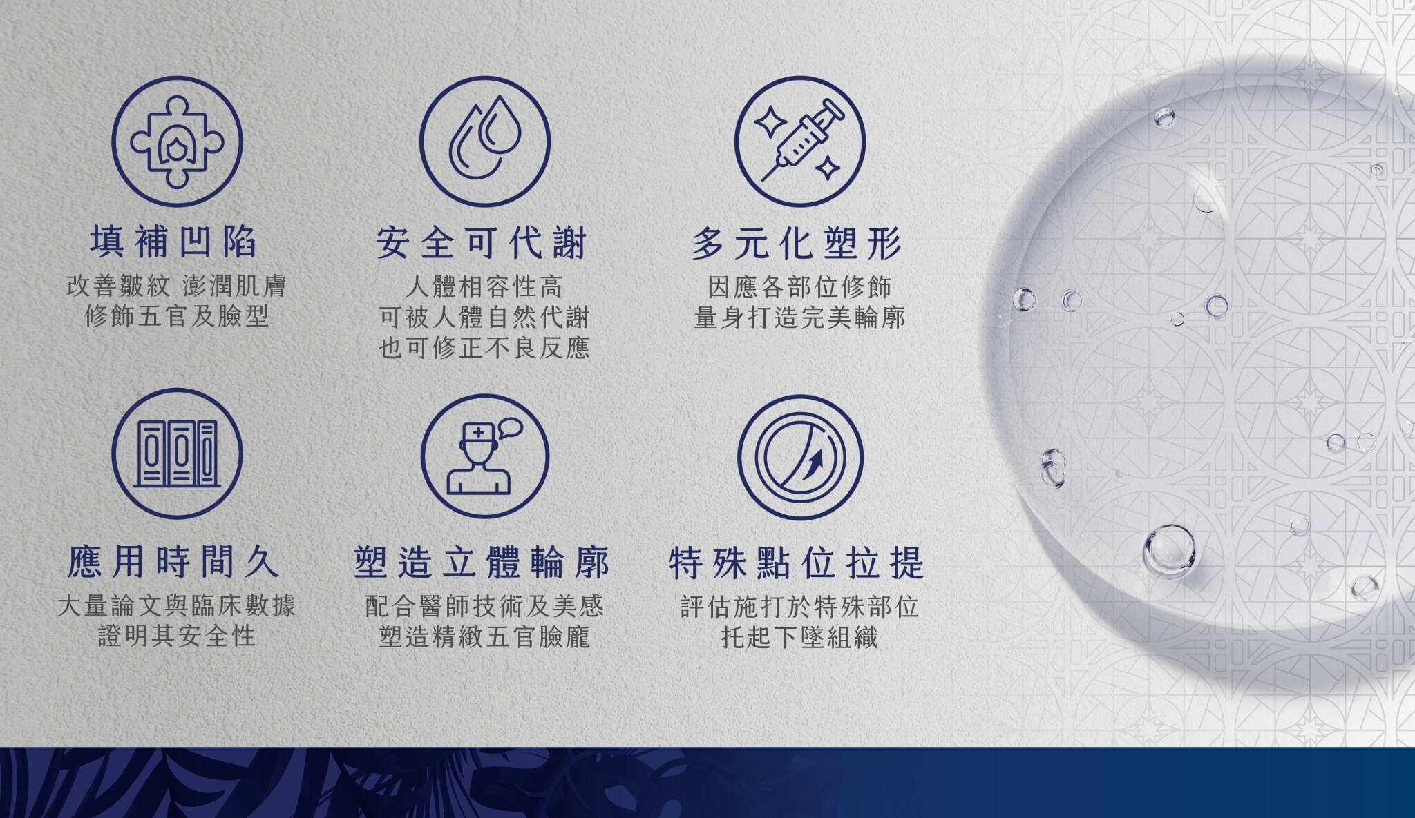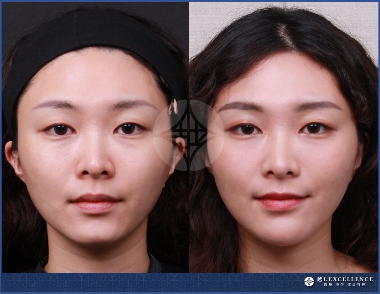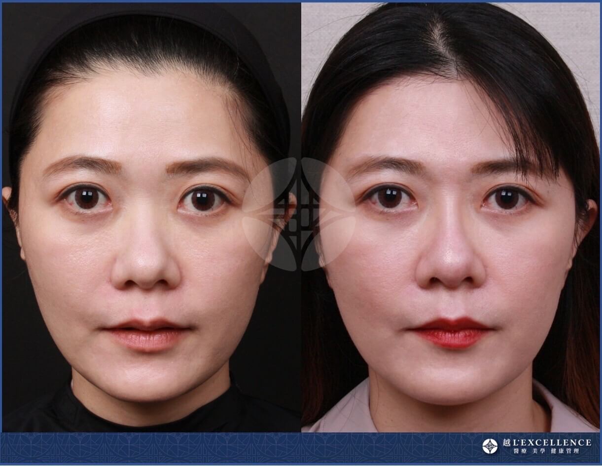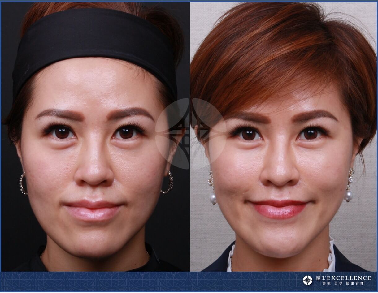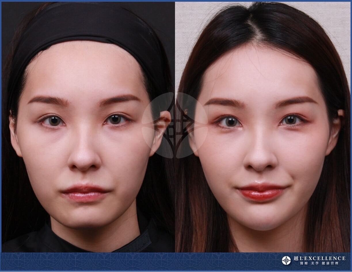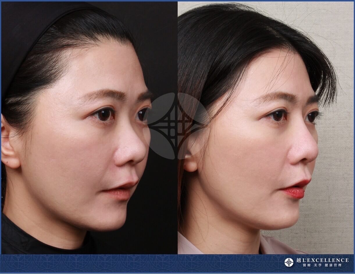 臉部精緻微雕,打造俐落輪廓-玻尿酸中文名稱:玻尿酸透明質酸。英文名稱:Hyaluronic Acid。玻尿酸是一種透明的膠狀結晶物,具有強力的吸水性,可保持肌膚彈性,可以有效增加及鎖緊肌膚中的水份,進而保持肌膚彈性與維持形狀。透過注射於治療部位,增進皮下組織的容量,讓臉部凹陷得到改善,擺脫給人的疲倦感;而立體度的運用,也能提升五官俐落感,讓鼻子、下半臉、下巴的V型線更加清楚明顯,而撫平皺紋均有不錯的效果。 治療原理玻尿酸(hyaluronic Acid,簡稱HA)學名為透明質酸,是一種外觀透明、具黏性的天然多醣類膠狀物質。玻尿酸是人體中本來就有的物質,年輕肌膚柔軟有彈性,就是因為玻尿酸以膠質型態,大量存在於人體的結締組織與真皮層中,而玻尿酸強大的保濕功能,除了可以提升肌膚的光澤與飽水度外,也是保持年輕的關鍵之一。玻尿酸進行注射後,能立即補充肌膚的儲水保濕能力,改善老化導致的組織萎縮,並讓肌膚恢復年輕豐潤感,而進階治療更可以達到臉部精雕效果,包括蘋果肌、淚溝填補、隆鼻、V下巴、豐額頭、豐頰等豐唇延伸應用。一般來說,玻尿酸注射當下就可以感受明顯效果的變化、過程中不用開刀,搭配玻尿酸不同品牌及不同分子劑型與劑量建議,以各部位量身打造的技法,才能達到全方位雕塑治療效果。 術前評估 市面上各家品牌及不同劑型的玻尿酸,注射方式以及注射深度與適合的治療部位都有所不同。越L’EXCELLENCE醫療美學主要以國際原廠三大領導品牌《Restylane瑞絲朗》、《JUVÉDERM喬雅登》及《TEOXANE緹奧希》進行玻尿酸針劑治療。透過專業醫師一對一的術前諮詢服務,醫師會根據個人臉型比例與患者對療程的期望,匯集多年臨床經驗與美感評估,提供更為精確的客製化療程,確保每位患者都能達到自然且精緻的美型輪廓。 實際案例 此案例透過醫師全臉評估,以玻尿酸針劑搭配肉毒桿菌素治療,針對全臉輪廓線條精緻提升。 此案例透過玻尿酸治療,針對易顯老態的眼窩凹陷處進行填補,免動刀即可擁有補脂手術般的術後效果。 此案例透過玻尿酸治療,拉長並修順下巴線條,改善下半臉的臉型輪廓。 此案例透過玻尿酸治療,針對凹陷的夫妻宮(太陽穴)進行填補,使臉型輪廓更加柔順。 此案例透過玻尿酸治療,針對膠原蛋白流失後的臉頰凹陷及法令紋,進行填充提升臉部膨潤度。 此案例透過玻尿酸治療,針對膠原蛋白流失後,造成的蘋果肌塌陷進行填補,找回豐潤飽滿的中臉線條感。 此案例透過玻尿酸治療,針對蘋果肌塌陷及淚溝造成的疲態感,進行不同的層次填補,找回豐潤飽滿的中臉線條感與告別淚溝造成的黑眼圈。 此案例透過大分子玻尿酸填補治療,針對下巴不對稱及過短的型態,進行不同的層次填補,找回協調且對稱的下巴線條,讓臉型輪廓更加協調。 此案例透過大分子玻尿酸填補治療,針對下巴過短的外型,進行不同的層次填補,找回協調且對稱的下巴線條,讓臉型輪廓更加協調。 此案例透過大分子玻尿酸填補治療,針對下巴過短後縮的外型,進行玻尿酸層次填補,打造屬於男生方形陽剛帥氣的下巴線條感。 此案例透過玻尿酸治療,針對淚溝填補,進而改善眼袋及黑眼圈造成的疲態感;此外,並協同音波拉提眼周2.0深度治療,另整體效果更加分。 此案例藉由玻尿酸填補方式,因避免鼻形變寬的疑慮,採獨創不同層次的注射技法,搭配產品的特色,進而改善塌陷的鼻形,呈現精緻的美感鼻形。 此案例藉由玻尿酸填補方式,因避免鼻形變寬的疑慮,採獨創不同層次的注射技法,搭配產品的特色,進而改善塌陷的鼻形,呈現精緻的美感鼻形。 此案例藉由玻尿酸填補方式,因避免鼻形變寬的疑慮,採獨創不同層次的注射技法,搭配產品的特色,進而改善塌陷的鼻形,呈現精緻的美感鼻形。 此案例藉由玻尿酸填補方式,因避免鼻形變寬的疑慮,採獨創不同層次的注射技法,搭配產品的特色,進而改善塌陷的鼻形,呈現精緻的美感鼻形。 此案例藉由玻尿酸填補方式,採特殊的注射技法,搭配產品的特色,進而改善眼窩凹陷塌的樣貌。 此案例藉由玻尿酸填補方式,採特殊的注射技法,搭配產品的特色,進而改善眼窩凹陷塌的樣貌。 手部治療 上述手部案例是透過玻尿酸針劑治療,有效改善手部皺折及細紋,此為術後六週之比對,其玻尿酸劑型及施打支數,由專業醫師評估後安排客製化療程。 上述手部案例,是藉由晶亮瓷治療。適用於手部皺褶的紋理( 雞爪手),透過產品的特性,且術後不需特別按摩,是相對自然且安全的皮下填充劑選擇。改善肌膚紋路問題,由專業醫師評估治療。 Restylane NASHA[純粹]速效水膜針 來自北歐,玻尿酸領導品牌。挺美的,追求美的旅程中,瑞絲朗一直是你的最佳靈感繆思,追求美的旅程中,瑞絲朗一直是你的最佳靈感繆思,承襲北歐設計精神,以純簡奢華的工藝打造出能抵抗變形的高彈力質純玻尿酸; 品質良好的玻尿酸劑型應有大、中、小分子之分,依照不同的治療部位及肌膚構造的需求,謹慎選擇適合的玻尿酸劑型,才能訂製專屬優雅,讓美麗持久閃耀。 NASHA [純粹]玻尿酸特色減痛配方高舒適:恢復期短立即見效溫和低敏低腫脹:99%近似天然玻尿酸效果持久看得見:12-18個月 滿意度高玻尿酸分子均勻:細緻度高 量身訂製絕佳組織支撐力:支撐拉提 雕塑輪廓 NASHA [純粹]速效水膜針。365全天候保濕增加彈性緊緻肌膚修飾細紋改善痘疤高效保濕 Restylane Vital 