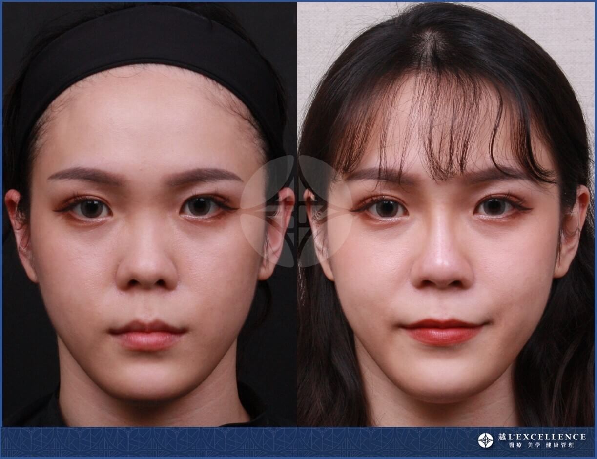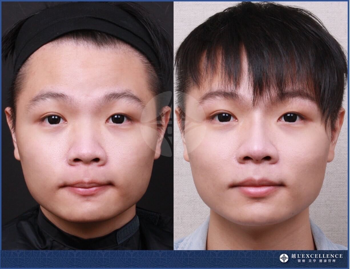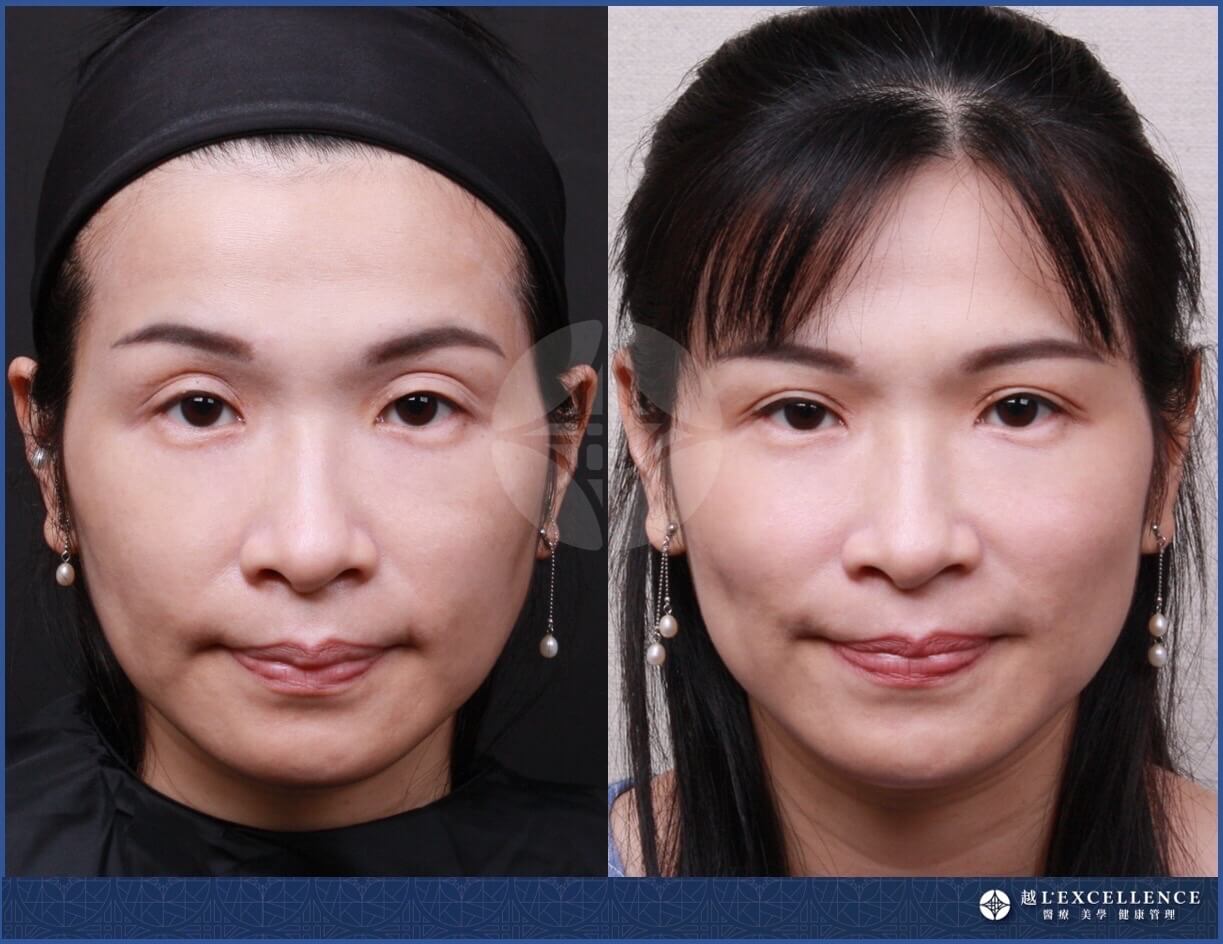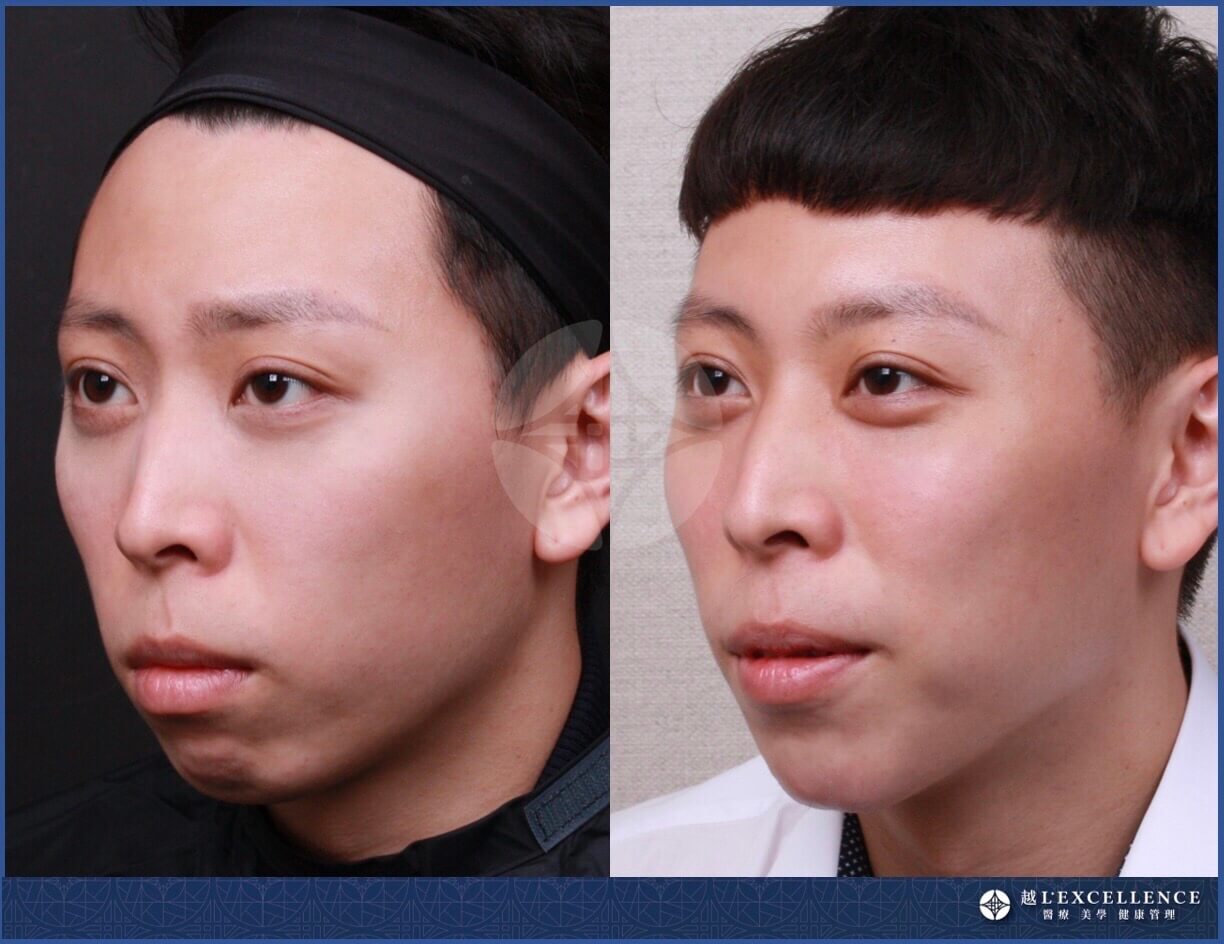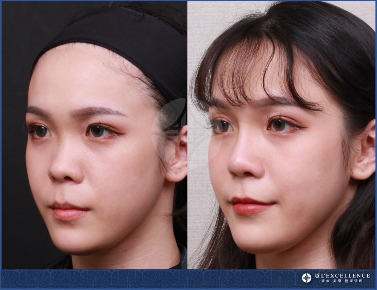 臉部精緻微雕,打造俐落輪廓-玻尿酸中文名稱:玻尿酸透明質酸。英文名稱:Hyaluronic Acid。玻尿酸是一種透明的膠狀結晶物,具有強力的吸水性,可保持肌膚彈性,可以有效增加及鎖緊肌膚中的水份,進而保持肌膚彈性與維持形狀。透過注射於治療部位,增進皮下組織的容量,讓臉部凹陷得到改善,擺脫給人的疲倦感;而立體度的運用,也能提升五官俐落感,讓鼻子、下半臉、下巴的V型線更加清楚明顯,而撫平皺紋均有不錯的效果。 治療原理玻尿酸(hyaluronic Acid,簡稱HA)學名為透明質酸,是一種外觀透明、具黏性的天然多醣類膠狀物質。玻尿酸是人體中本來就有的物質,年輕肌膚柔軟有彈性,就是因為玻尿酸以膠質型態,大量存在於人體的結締組織與真皮層中,而玻尿酸強大的保濕功能,除了可以提升肌膚的光澤與飽水度外,也是保持年輕的關鍵之一。玻尿酸進行注射後,能立即補充肌膚的儲水保濕能力,改善老化導致的組織萎縮,並讓肌膚恢復年輕豐潤感,而進階治療更可以達到臉部精雕效果,包括蘋果肌、淚溝填補、隆鼻、V下巴、豐額頭、豐頰等豐唇延伸應用。一般來說,玻尿酸注射當下就可以感受明顯效果的變化、過程中不用開刀,搭配玻尿酸不同品牌及不同分子劑型與劑量建議,以各部位量身打造的技法,才能達到全方位雕塑治療效果。 術前評估 市面上各家品牌及不同劑型的玻尿酸,注射方式以及注射深度與適合的治療部位都有所不同。越L’EXCELLENCE醫療美學主要以國際原廠三大領導品牌《Restylane瑞絲朗》、《JUVÉDERM喬雅登》及《TEOXANE緹奧希》進行玻尿酸針劑治療。透過專業醫師一對一的術前諮詢服務,醫師會根據個人臉型比例與患者對療程的期望,匯集多年臨床經驗與美感評估,提供更為精確的客製化療程,確保每位患者都能達到自然且精緻的美型輪廓。 實際案例 此案例透過醫師全臉評估,以玻尿酸針劑搭配肉毒桿菌素治療,針對全臉輪廓線條精緻提升。 此案例透過玻尿酸治療,針對易顯老態的眼窩凹陷處進行填補,免動刀即可擁有補脂手術般的術後效果。 此案例透過玻尿酸治療,拉長並修順下巴線條,改善下半臉的臉型輪廓。 此案例透過玻尿酸治療,針對凹陷的夫妻宮(太陽穴)進行填補,使臉型輪廓更加柔順。 此案例透過玻尿酸治療,針對膠原蛋白流失後的臉頰凹陷及法令紋,進行填充提升臉部膨潤度。 此案例透過玻尿酸治療,針對膠原蛋白流失後,造成的蘋果肌塌陷進行填補,找回豐潤飽滿的中臉線條感。 此案例透過玻尿酸治療,針對蘋果肌塌陷及淚溝造成的疲態感,進行不同的層次填補,找回豐潤飽滿的中臉線條感與告別淚溝造成的黑眼圈。 此案例透過大分子玻尿酸填補治療,針對下巴不對稱及過短的型態,進行不同的層次填補,找回協調且對稱的下巴線條,讓臉型輪廓更加協調。 此案例透過大分子玻尿酸填補治療,針對下巴過短的外型,進行不同的層次填補,找回協調且對稱的下巴線條,讓臉型輪廓更加協調。 此案例透過大分子玻尿酸填補治療,針對下巴過短後縮的外型,進行玻尿酸層次填補,打造屬於男生方形陽剛帥氣的下巴線條感。 此案例透過玻尿酸治療,針對淚溝填補,進而改善眼袋及黑眼圈造成的疲態感;此外,並協同音波拉提眼周2.0深度治療,另整體效果更加分。 此案例藉由玻尿酸填補方式,因避免鼻形變寬的疑慮,採獨創不同層次的注射技法,搭配產品的特色,進而改善塌陷的鼻形,呈現精緻的美感鼻形。 此案例藉由玻尿酸填補方式,因避免鼻形變寬的疑慮,採獨創不同層次的注射技法,搭配產品的特色,進而改善塌陷的鼻形,呈現精緻的美感鼻形。 此案例藉由玻尿酸填補方式,因避免鼻形變寬的疑慮,採獨創不同層次的注射技法,搭配產品的特色,進而改善塌陷的鼻形,呈現精緻的美感鼻形。 此案例藉由玻尿酸填補方式,因避免鼻形變寬的疑慮,採獨創不同層次的注射技法,搭配產品的特色,進而改善塌陷的鼻形,呈現精緻的美感鼻形。 此案例藉由玻尿酸填補方式,採特殊的注射技法,搭配產品的特色,進而改善眼窩凹陷塌的樣貌。 此案例藉由玻尿酸填補方式,採特殊的注射技法,搭配產品的特色,進而改善眼窩凹陷塌的樣貌。 手部治療 上述手部案例是透過玻尿酸針劑治療,有效改善手部皺折及細紋,此為術後六週之比對,其玻尿酸劑型及施打支數,由專業醫師評估後安排客製化療程。 上述手部案例,是藉由晶亮瓷治療。適用於手部皺褶的紋理( 雞爪手),透過產品的特性,且術後不需特別按摩,是相對自然且安全的皮下填充劑選擇。改善肌膚紋路問題,由專業醫師評估治療。 Restylane NASHA[純粹]速效水膜針 來自北歐,玻尿酸領導品牌。挺美的,追求美的旅程中,瑞絲朗一直是你的最佳靈感繆思,追求美的旅程中,瑞絲朗一直是你的最佳靈感繆思,承襲北歐設計精神,以純簡奢華的工藝打造出能抵抗變形的高彈力質純玻尿酸; 品質良好的玻尿酸劑型應有大、中、小分子之分,依照不同的治療部位及肌膚構造的需求,謹慎選擇適合的玻尿酸劑型,才能訂製專屬優雅,讓美麗持久閃耀。 NASHA [純粹]玻尿酸特色減痛配方高舒適:恢復期短立即見效溫和低敏低腫脹:99%近似天然玻尿酸效果持久看得見:12-18個月 滿意度高玻尿酸分子均勻:細緻度高 量身訂製絕佳組織支撐力:支撐拉提 雕塑輪廓 NASHA [純粹]速效水膜針。365全天候保濕增加彈性緊緻肌膚修飾細紋改善痘疤高效保濕 Restylane Vital 