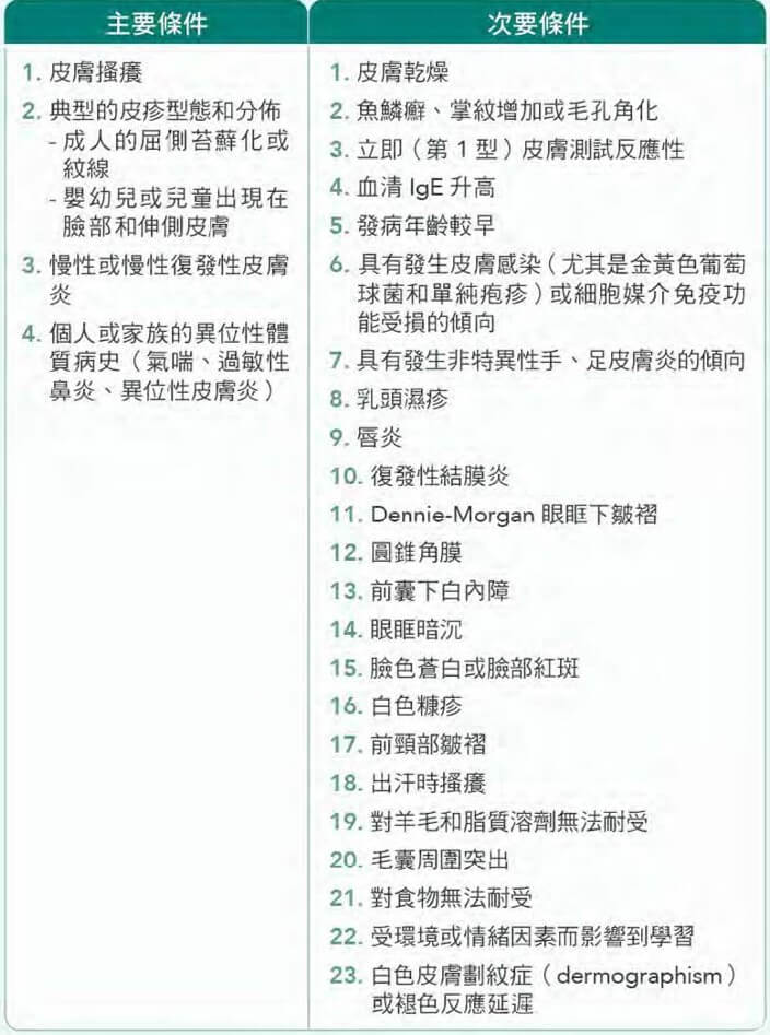 雖然世界各國異位性皮膚炎的診斷標準略有不同,但大致上和上面提的四大主要特徵相去不遠。