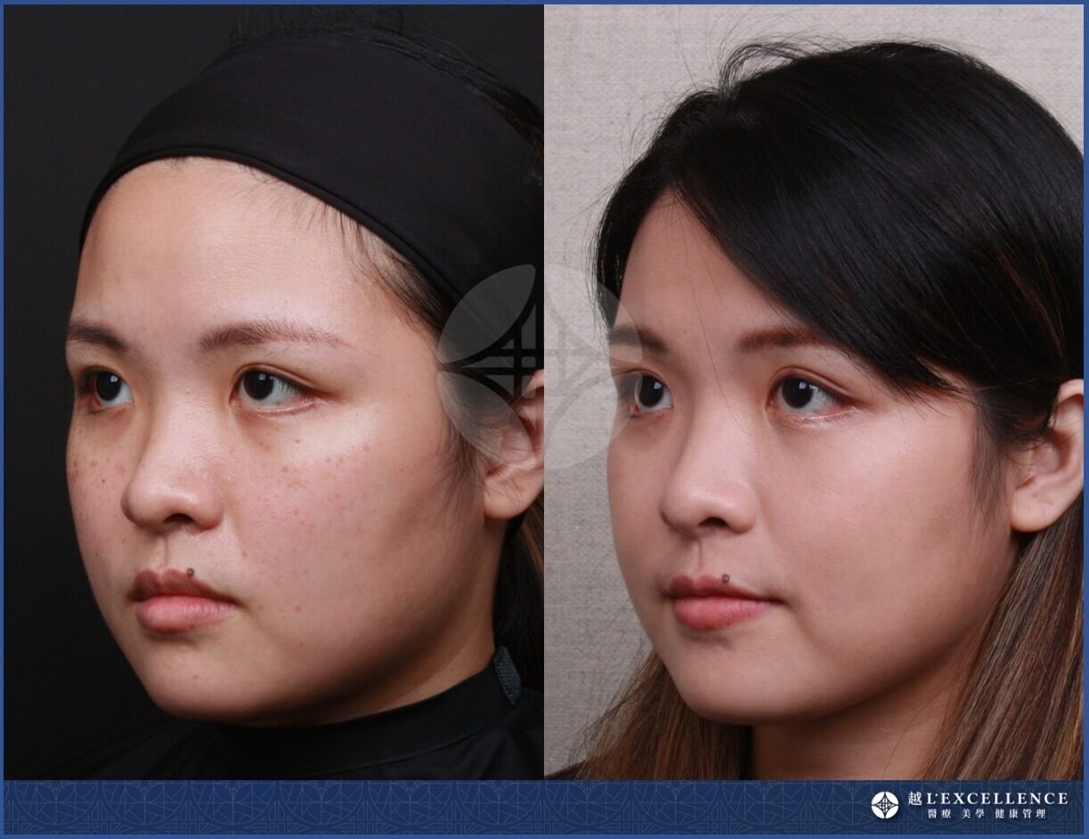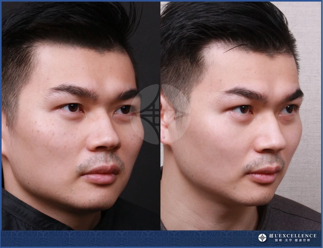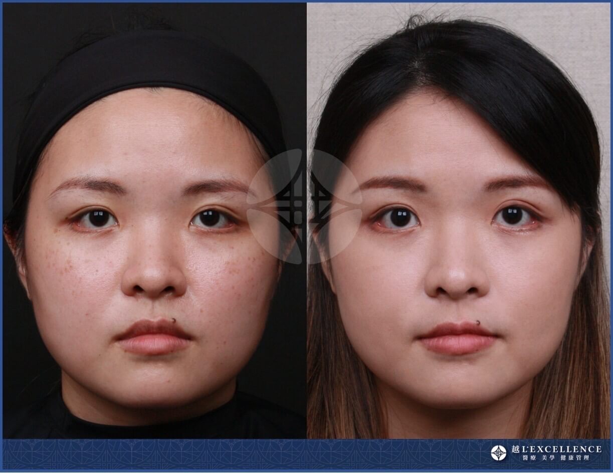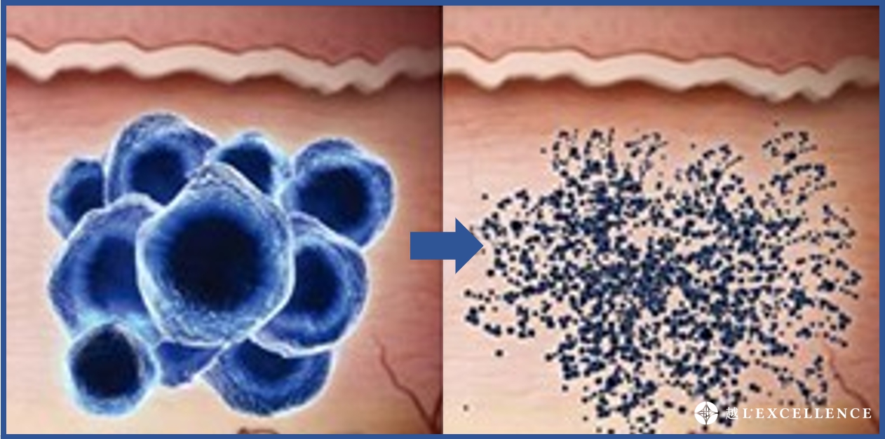 超越制式雙皮秒雷射,PicoSure Pro鉑金蜂巢 & PicoWay全像聚焦越L’EXCELLENCE醫療團隊,採用美國原廠皮秒雷射PicoSure Pro及PicoWay儀器,均通過美國FDA及台灣衛福部認證,涵蓋了完整的532nm / 755nm / 1064nm 全波段,而PicoWay全像聚焦科技與PicoSure Pro鉑金蜂巢透鏡,都是將高速、高能量的雷射作用於肌膚中形成聚焦點,無論是膚質各種暗沈、斑點、痘疤與粗大毛孔困擾,均能刺激膠原蛋白增生,撫平痘疤、細紋、毛孔等斑點色素問題,進而讓肌膚更為細緻透亮。 院內實際案例 院內刺青案例 原廠儀器介紹 PicoSure Pro 鉑金蜂巢皮秒雷射中文名稱: 色若修皮秒亞歷山大雷射及配件英文名稱:Cynosure PicoSure Alexandrite Laser and Accessories衛署醫器輸字第028802號PicoSure PRO 鉑金蜂巢皮秒雷射|10年技術巔峰,再次突破極限來自美國原廠的PicoSure PRO皮秒雷射,承襲十年頂尖技術,再升級!搭載全球最新專利技術「Platinum Focus™ 鉑金蜂巢透鏡」,啟動Turbo Mode,大幅縮短雷射輸出時間,熱傷害更少、療效更精準。獨家755nm波長,能在極短的**550皮秒(550×10⁻¹²秒)**內,將黑色素擊碎成微米粉塵,層層喚醒肌膚淨白潛能。 PicoWay全像超皮秒雷射中文名稱:肯得拉皮秒衛釹雅克雷射系統英文名稱:Candela PicoWay Laser System衛署醫器輸字第027962號深度與治療廣泛程度都俱增超短脈衝,時間是皮秒雷射的獨特優勢,時間越短,熱能越少,能量卻增強。治療時透過短脈衝將瞬間能量增強,能達成治療需要的光震波效應,不但能夠有效率的破壞皮膚的色素與斑點,卻又不會過度產生熱能,治療恢復期相當短,有別於傳統雷射副作用。 作用原理PicoSure Pro鉑金皮秒雷射以單波長755nm;PicoWay超皮秒雷射,則是雙波長1064nm及532nm不同波長。PicoSure Pro 755 鉑金皮秒雷射波長專攻黑色素, 使其對於除斑更具效果。755nm波長對黑色素的吸收率是1064nm波長的3倍, 其高精確度確保術後的皮膚幾乎沒有皮下出血或是開放性出血, 縮短了恢復期。755nm 是適合亞洲人膚色的波長, 反黑風險小︑ 除斑效率高。搭載全球專利「鉑金蜂巢瞬效透鏡(Platinum Focus™)」,全新的聚焦鏡面設計及鍍膜技術,使得能量輸出更穩定,可以將雷射光束重新分割聚焦,提升雷射能量,還能在不傷害皮膚、沒有傷口的情況下,產生「空泡效應(LIOB,laser-induced optical breakdown)」,啟動肌膚修復機制,刺激膠原蛋白重組,優雅揮別改善毛孔粗大、痘疤以及細紋等困擾。PicoWay超皮秒雷射,全像聚焦科技結合「全像擴散」及「雙層聚焦」的特性,以繞射方式將光束先分流再聚焦,並將22倍高強度的治療瞬間打入肌膚底層,在不傷害表皮的情況下,形成光學空泡效應(LIOB),如同在肌膚底層打入雙層的隱形飛梭,卻沒有飛梭療程的熱痛感與恢復期。1064奈米波長可深入聚焦於真皮層,532奈米波長則可聚焦在表皮層,上下的雙層作用,透過高速皮秒震波的360度全像擴散。有效使膠原蛋白與彈力纖維活化,就像在肌膚裡起了3D立體的填充作用,讓肌膚修護全面啟動,使肌膚更健康、飽滿、緊實。 治療前,肌膚底層色素如同圖示上方色彩粒子。 奈秒治療,光熱與部分光震效應作用,將色彩粒子擊碎成小粒子。 皮秒治療,高速光震波效應作用,擊碎至極小的粒子,再透過身體代謝。 什麼是 Picosecond (皮秒)?皮秒為一時間單位,在皮秒出現以前,一般雷射機台的治療時間以奈秒為主(10⁻⁹秒),經過科學的進步,研發出比奈秒快1000倍的皮秒(10⁻¹²秒)時間,而 Picosure Pro 755 皮秒雷射的 550 picoseconds (ps) 能讓每一道雷射光在 550×10⁻¹² 秒的時間內,就將雷射能量完全釋放,將黑色素在短時間內震碎為粉塵,不僅降低熱傷害、縮短恢復期,且能降低反黑機率,並能讓黑色素在極短的時間內快速代謝出體外。 尚未治療的黑色素斑塊。 傳統雷射治療後,黑色素呈顆粒狀態。 755 皮秒雷射治療後,黑色素呈現粉狀。 經由不同雷射對黑色素的比較圖,能夠看出在經過 Picosure Pro 755 皮秒雷射治療後,黑色素變得更細小,經皮秒脈衝震碎後的粉塵狀態,也更容易被體內的免疫細胞吞噬,能夠大幅減輕發炎反應的發生,甚至是大多數人擔心的發紅、反黑等雷射副作用。 一般雷射治療後比較。 超皮秒雷射治療後比較。 脈衝時間愈短,光震波效應愈多 安全性 色斑破壞性強。可針對小粒子色素去除。針對彩色刺青效果好。 有效性 熱傷害少。治療能量低。治療舒適度高。少副作用。恢復期短。 深度與治療廣泛程度都俱增超短脈衝,時間是皮秒雷射的獨特優勢,時間越短,熱能越少,能量卻增強。治療時透過短脈衝將瞬間能量增強,能達成治療需要的「光震波效應」,不但能夠有效率的破壞皮膚的色素與斑點,卻又不會過度產生熱能,治療恢復期相當短,有別於傳統雷射副作用。 波長選擇標準模式:淨膚、除斑、除刺青。全像聚焦模式:隱形飛梭、除皺、痘疤、改善膚質 以雙皮秒科技治療黑色素、刺青問題的光療儀器在台灣已有多種,其中PicoSure皮秒雷射因最早引進台灣並取得美國FDA認證,因此又俗稱皮秒儀器的「機皇」,在治療經驗與口碑深獲專業醫師及客人的推薦。越L’EXCELLENCE醫療團隊,由皮膚專科醫師評估,並針對不同深、淺黑色素種類,超越制式化療程改善肌膚各項困擾,期望可以給予客人全方位的皮秒雷射服務。 適應症 靚白除斑 各式表淺、深層斑點。咖啡牛奶斑、曬斑、雀斑、老人斑、肝斑等。色素型斑點(曬斑、雀斑、色素沉澱)肝斑青春痘疤痕紋路細