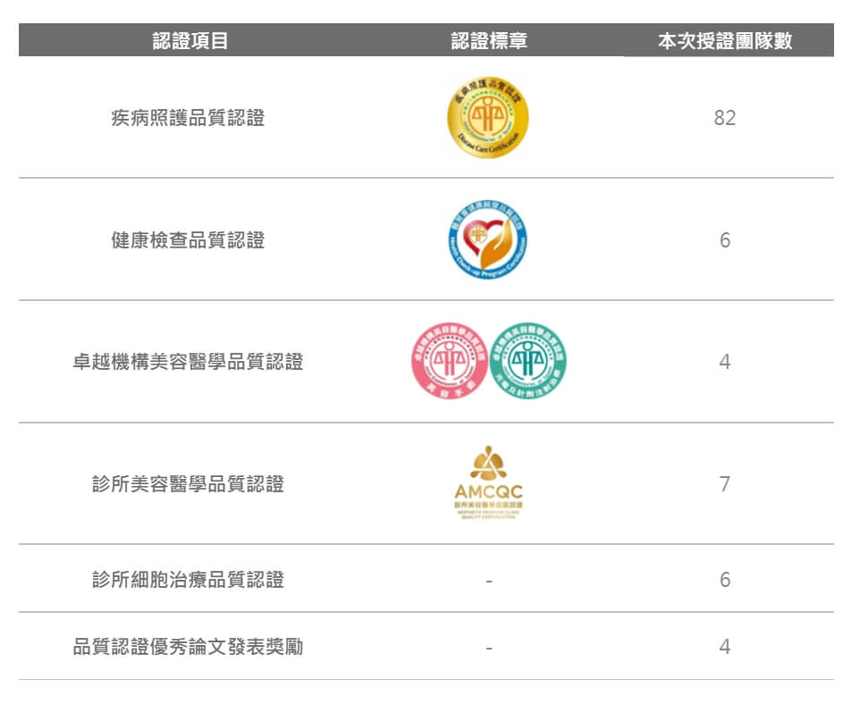為鼓勵提供民眾以人為本的醫療服務,且提升跨領域、跨團隊之間的溝通並整合資源,醫策會推出各項醫療品質認證,自診所到醫學中心,盼能提供民眾更安心健康的就醫環境。於2009年推出多項品質認證至今,醫策會已認證約900個醫療團隊,即使過去一年受疫情影響,本次仍有109個團隊通過認證標準,盼能提供民眾更佳的照護服務。
