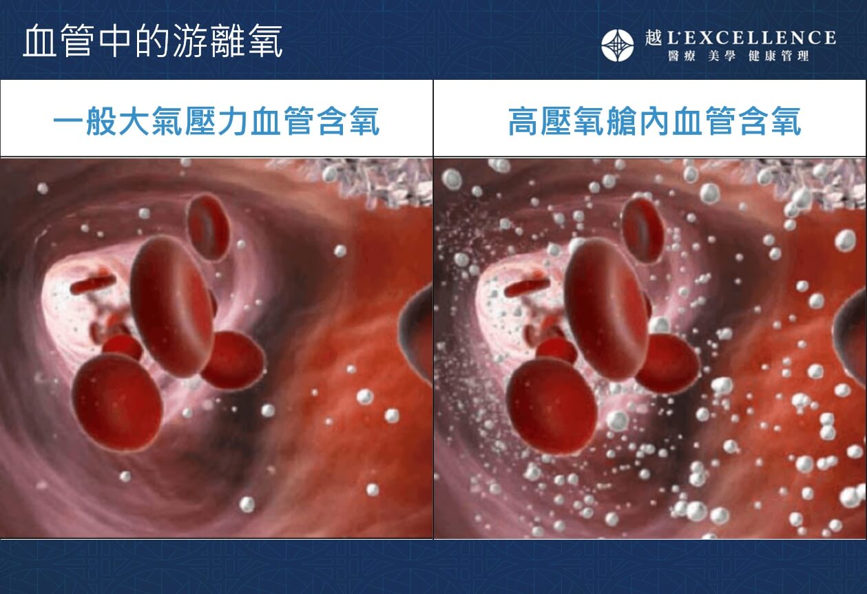 - 縮短療程後的修復時間,利用高壓氧促使血管的膨脹與收縮作用,加速恢復因外傷或手術後所引起的腫漲。