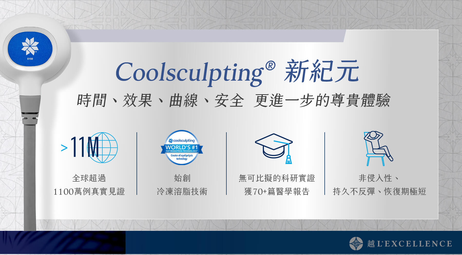 已邁入新紀元,全面升級Coolsculpting ELITE!將為你帶來更進一步的尊貴體驗。