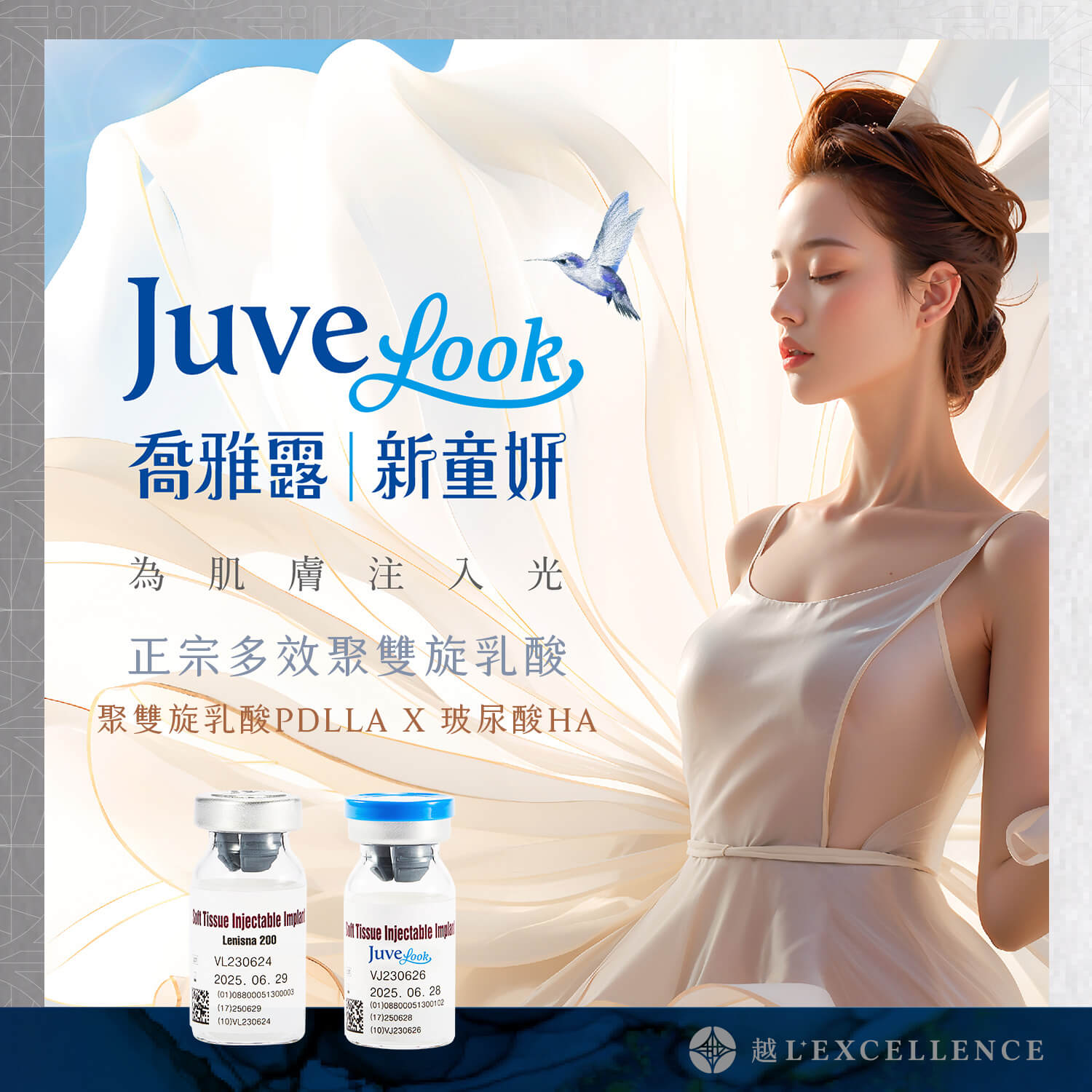 「Juvelook喬雅露|新童妍」是一款新型態的組織增生劑,透過複合式成分設計,結合聚雙旋乳酸PDLLA與玻尿酸HA的雙重功效,幫助肌膚促進膠原蛋白生成,達到緊緻、拉提、飽滿與膚質改善等多重效果。
