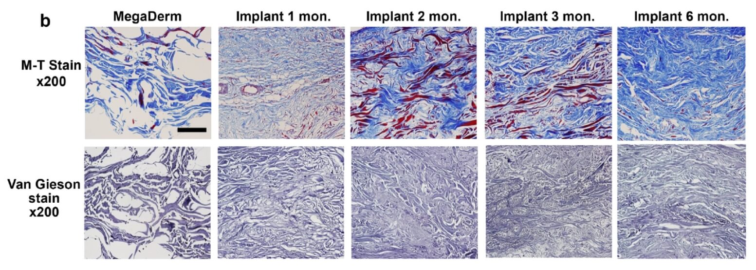 植入體內後 1 ~ 6 個月。膠原纖維及彈性纖維蛋白變厚變密不規則排列,與健康結締組織相同,彈性纖維在六個月內不斷增長。