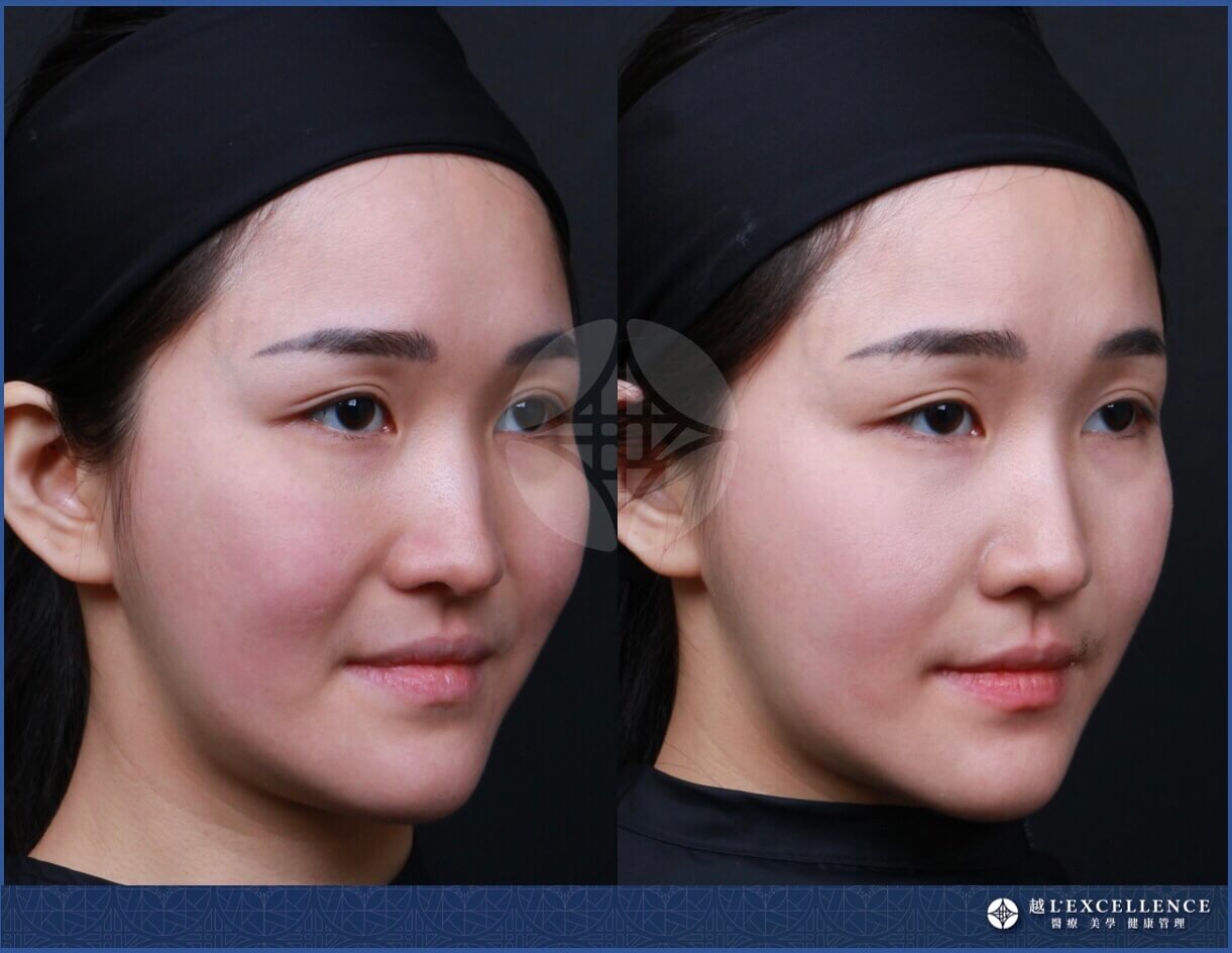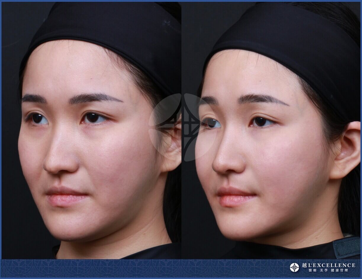 此案例透過MegaFill 異體真皮粉填補於法令紋及鼻部三根位置修飾,除了輔助法令文變淺之外,鼻形線條也更加柔和。