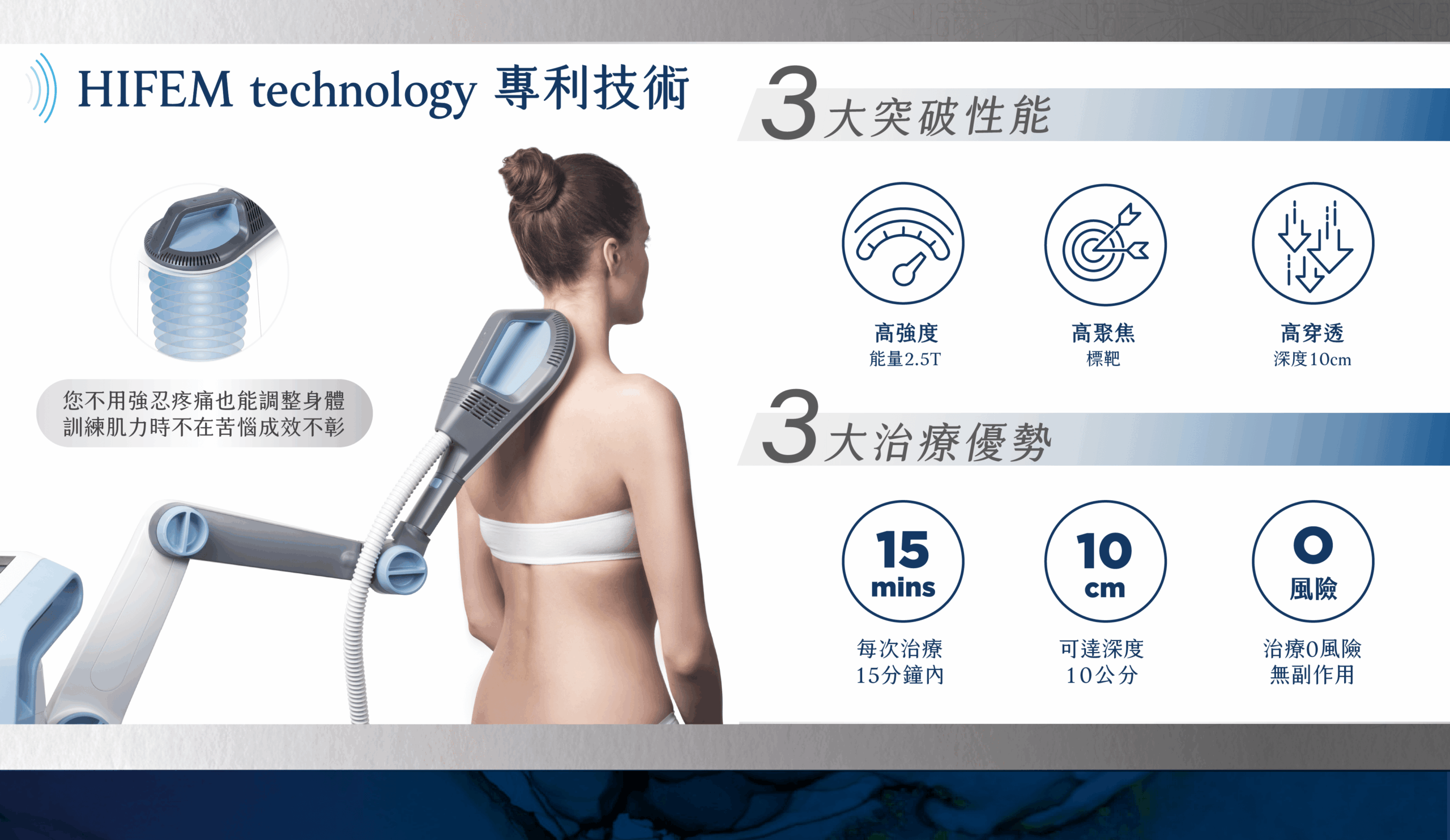 高強度的磁場可以與人體產生交互作用,對人體的神經組織進行去極化,進而導致肌肉組織進行收縮,達到同時增強肌肉,維持人體軀幹中心的穩定並能立即舒緩疼痛。